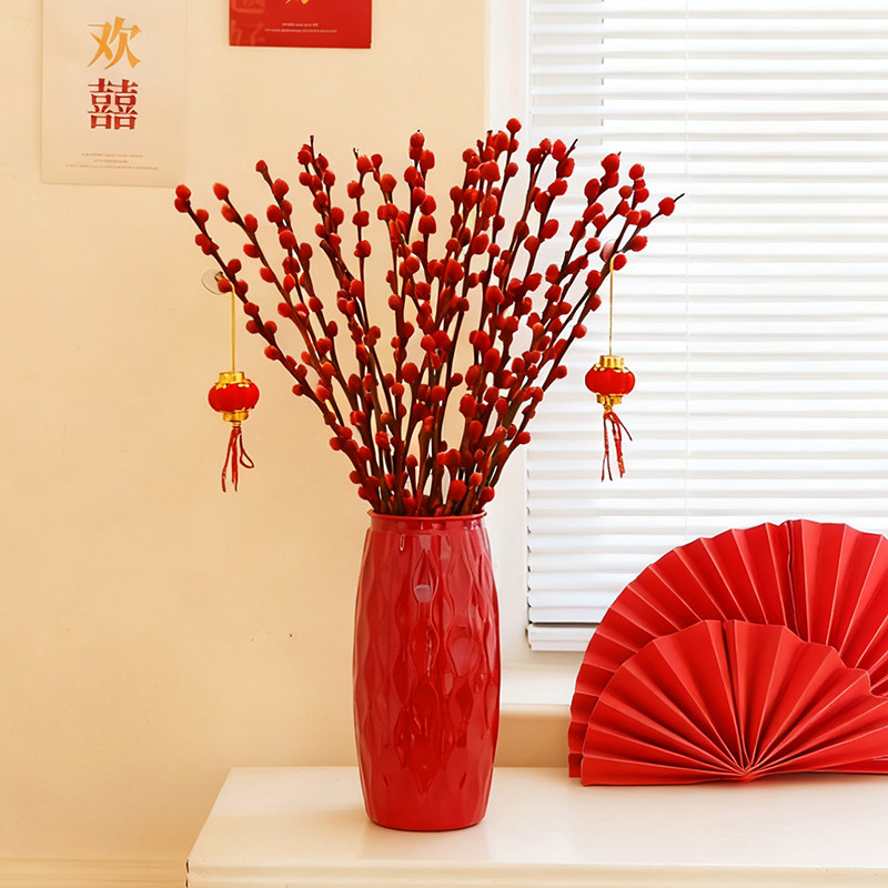 招财银柳年宵花卉干花真鲜花枝耐寒水培植物客厅春节装饰红色摆件