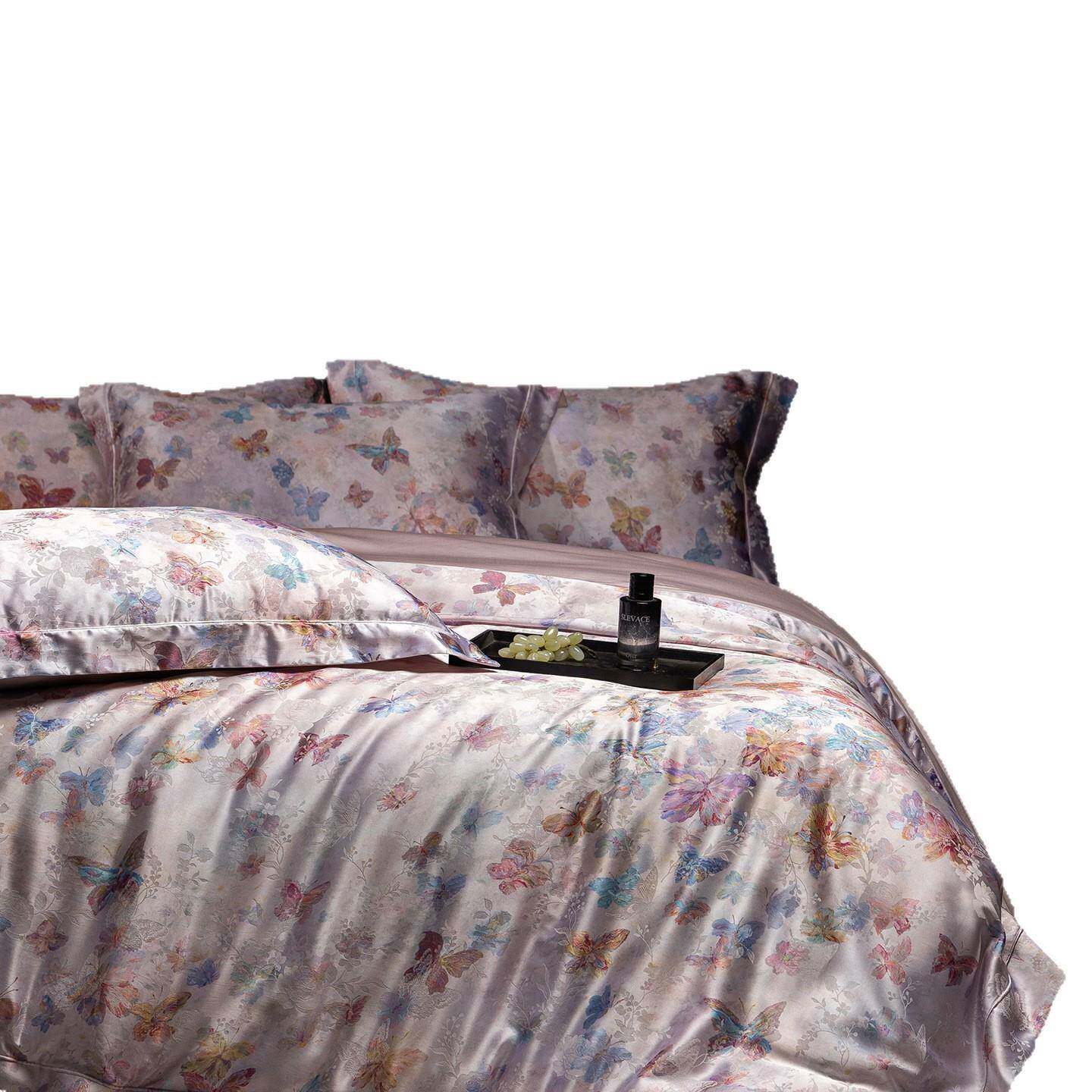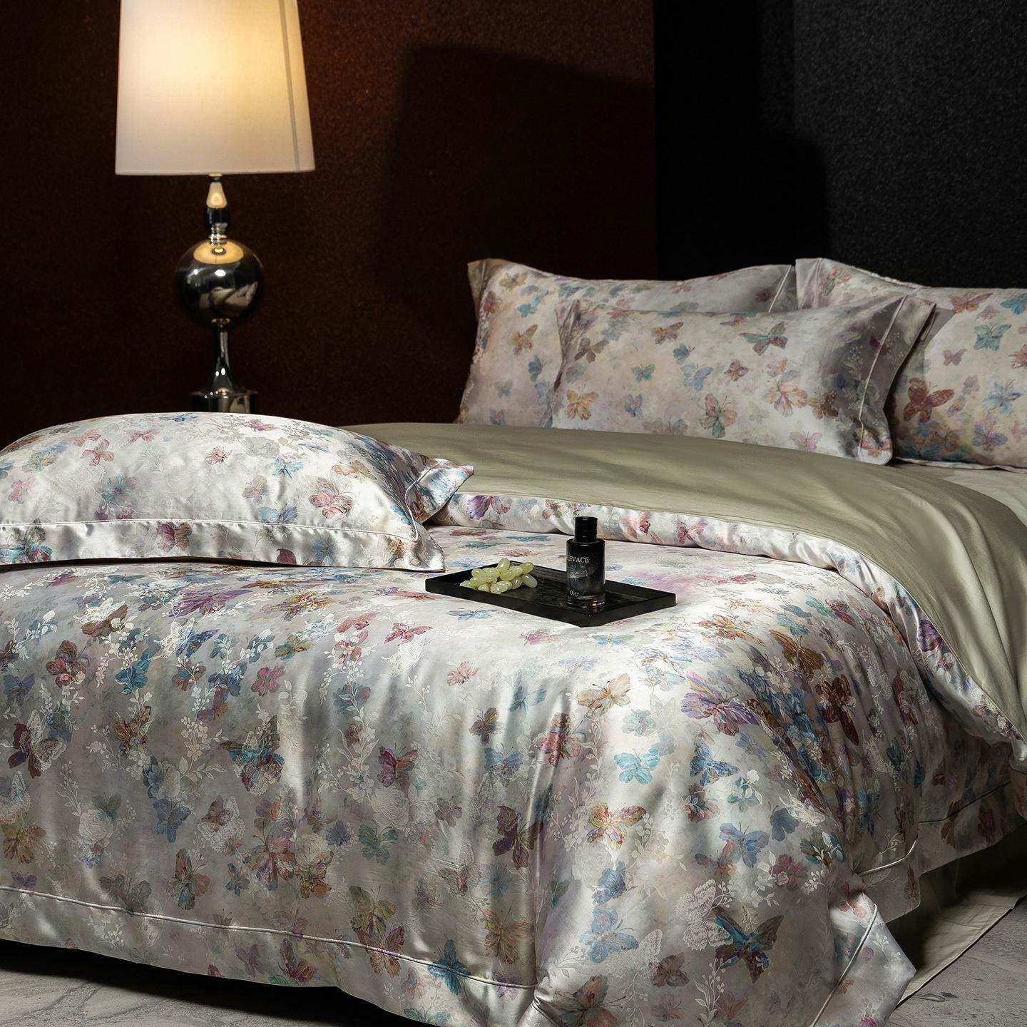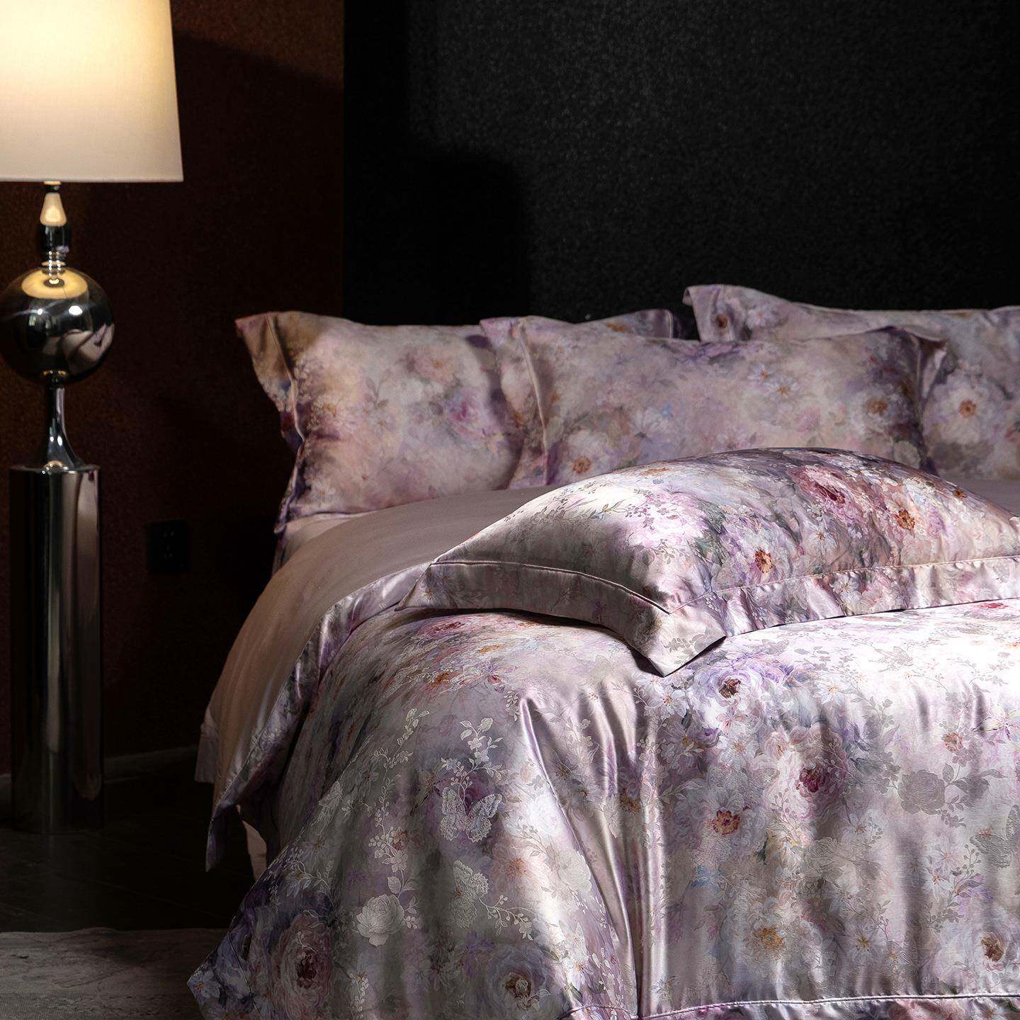 莫代尔混纺桑蚕丝锦丝缎全棉高端轻奢大气主卧四件套印花法式被套