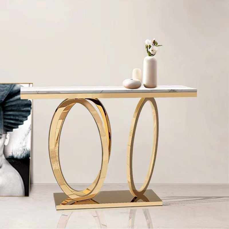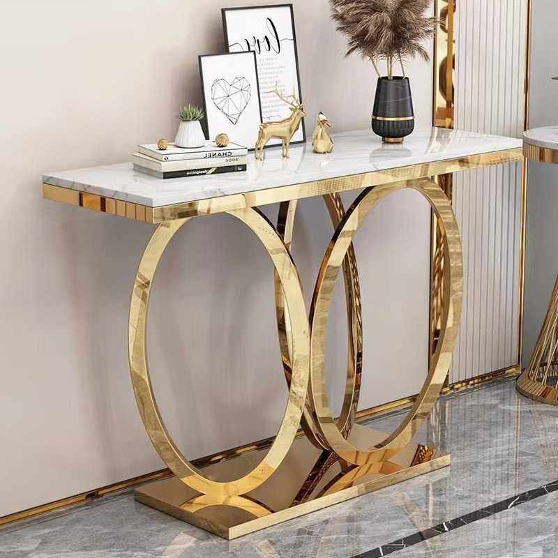 轻奢入户玄关柜大理石玄关桌子靠墙现代简约不锈钢装饰条案玄