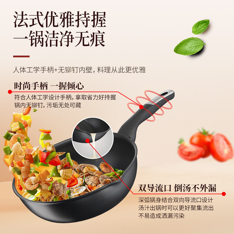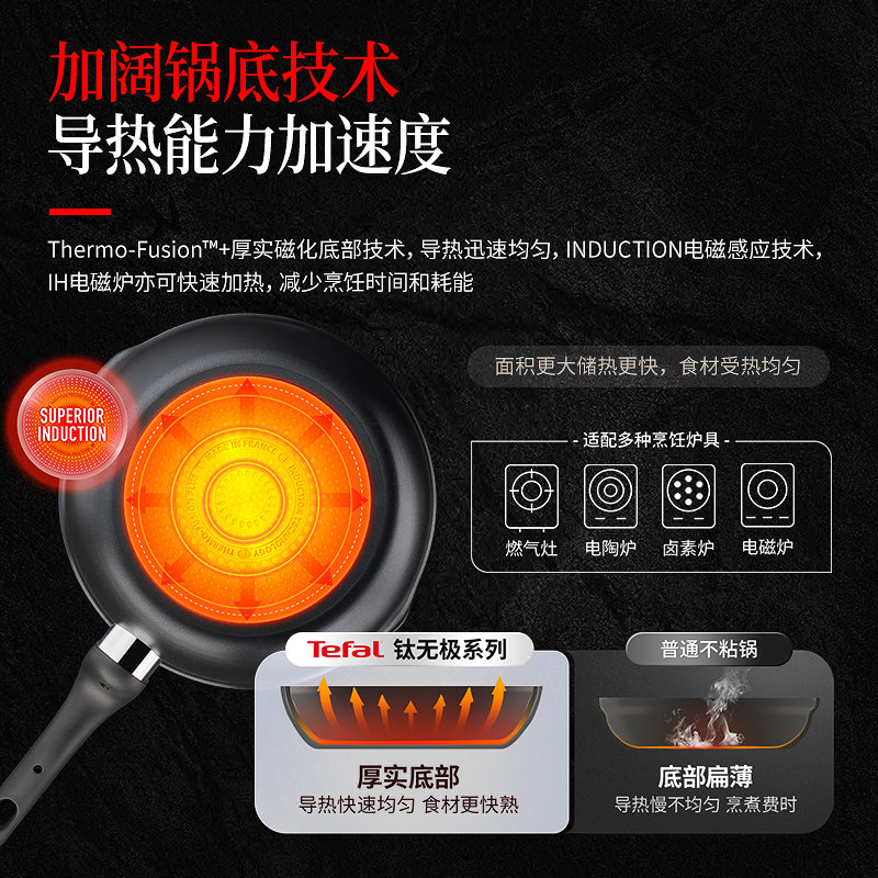 Tefal 特福钛无极炖炒锅不粘锅家用炒菜锅进口平底锅电磁炉燃气灶