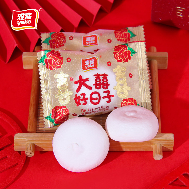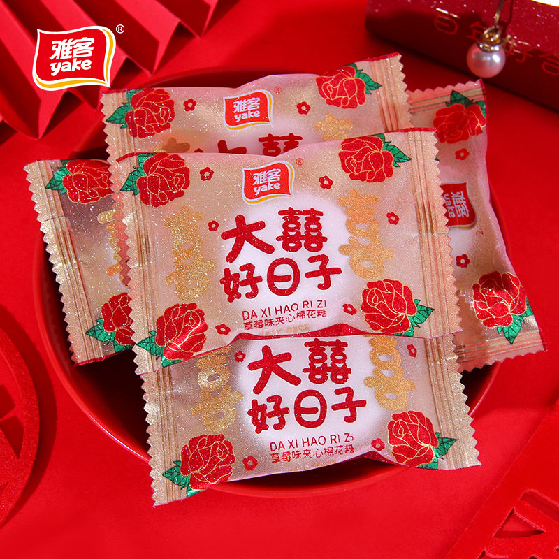 雅客大喜好日子草莓夹心棉花糖软糖高档结婚喜糖糖果零食批发爆浆