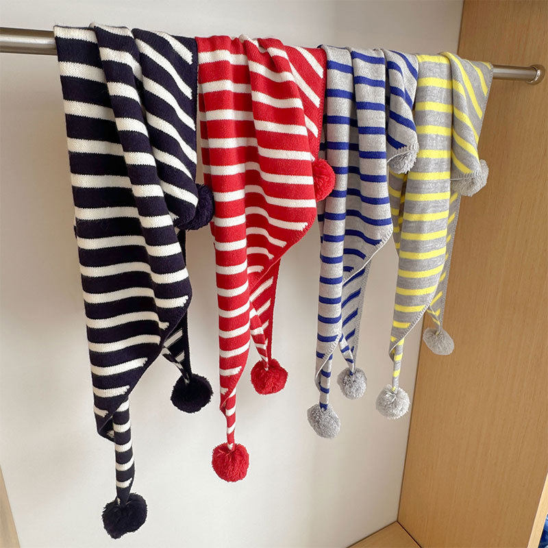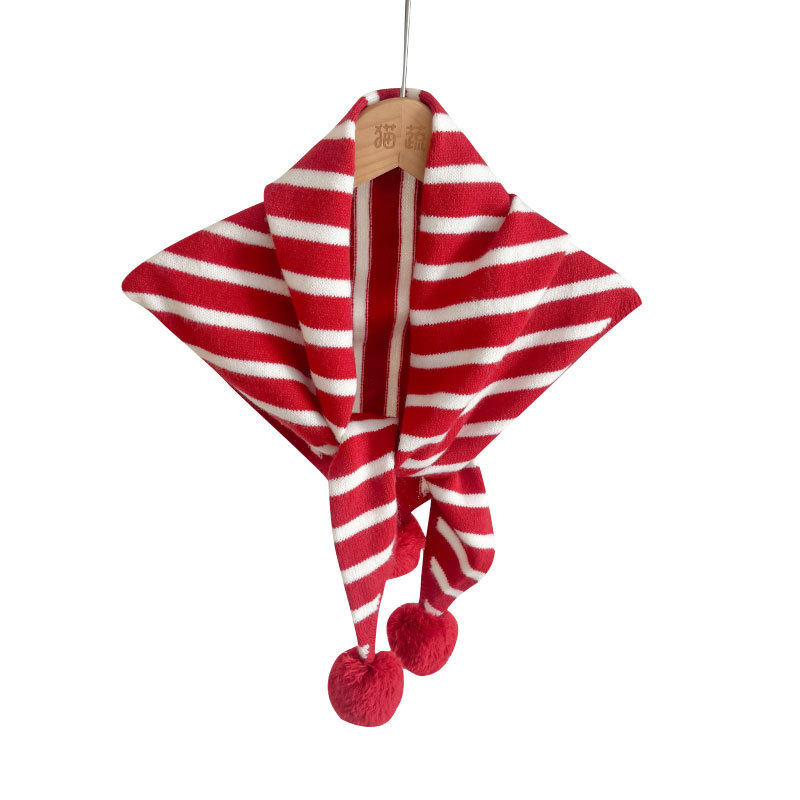 日系手工球球毛线针织条纹三角围巾新款保暖条纹围脖外搭披肩女