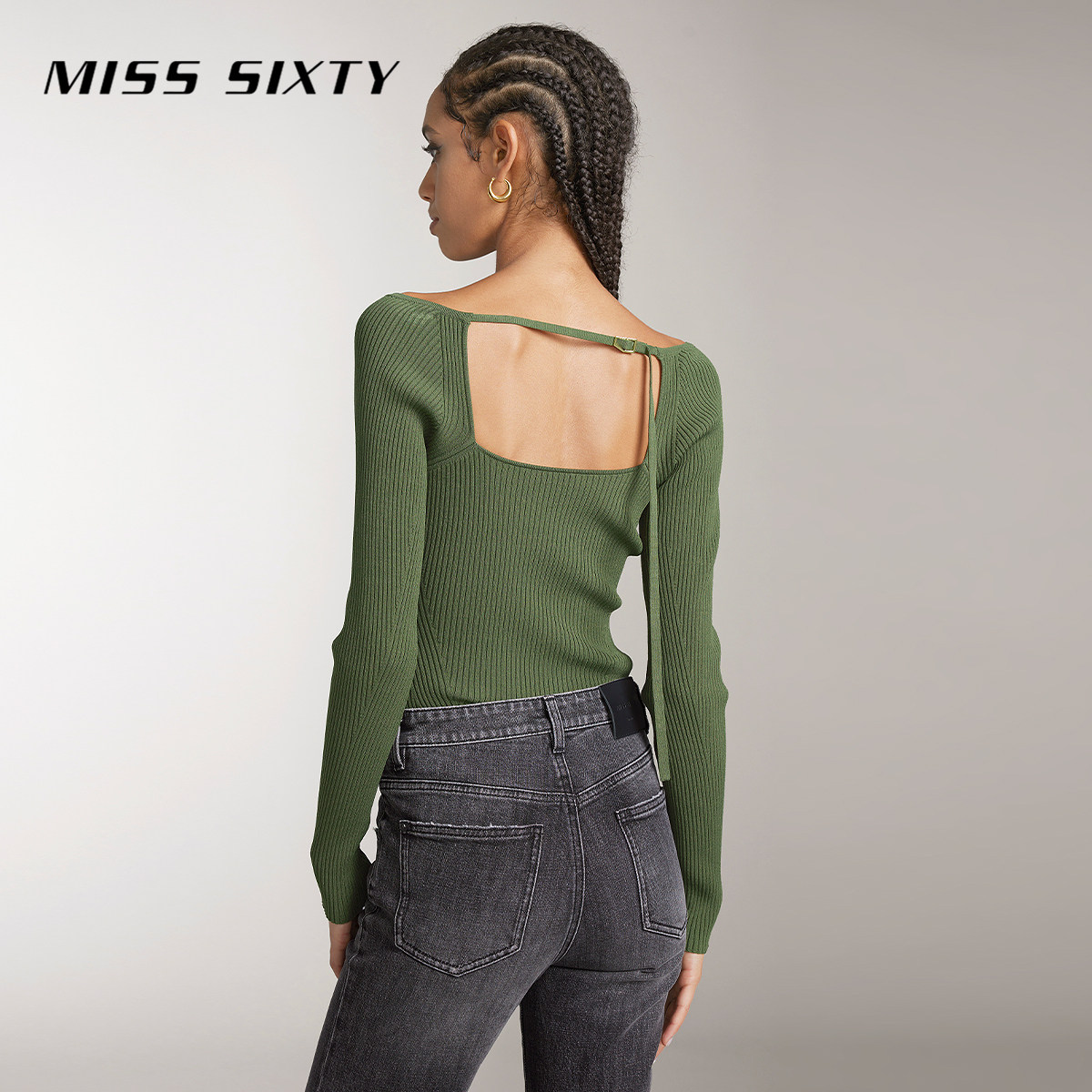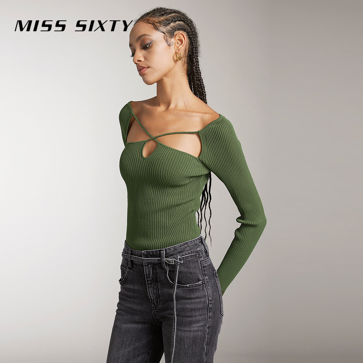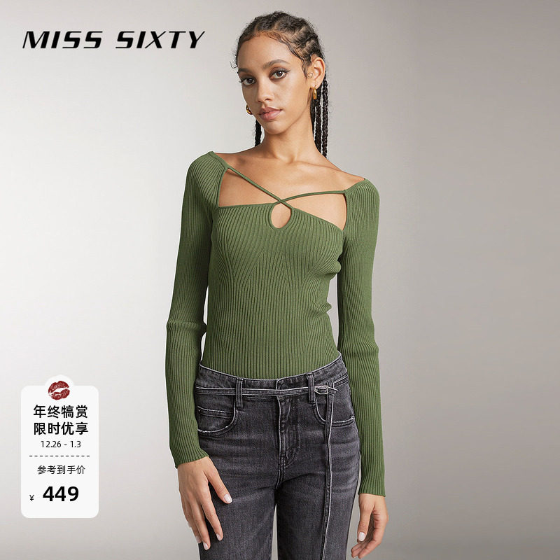 Miss Sixty针织衫上衣女小性感镂空修身显瘦短款长袖系带休闲毛衣