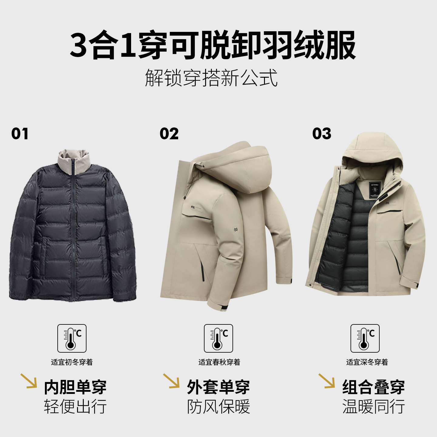 雪中飞三合一户外羽绒服冬季男款可拆卸内胆时尚防风保暖男装外套