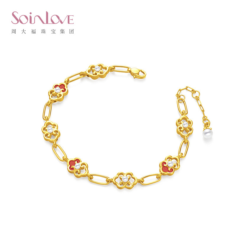 周大福SOINLOVE蜜粉金十里红妆 事事如意黄金手链生日礼物