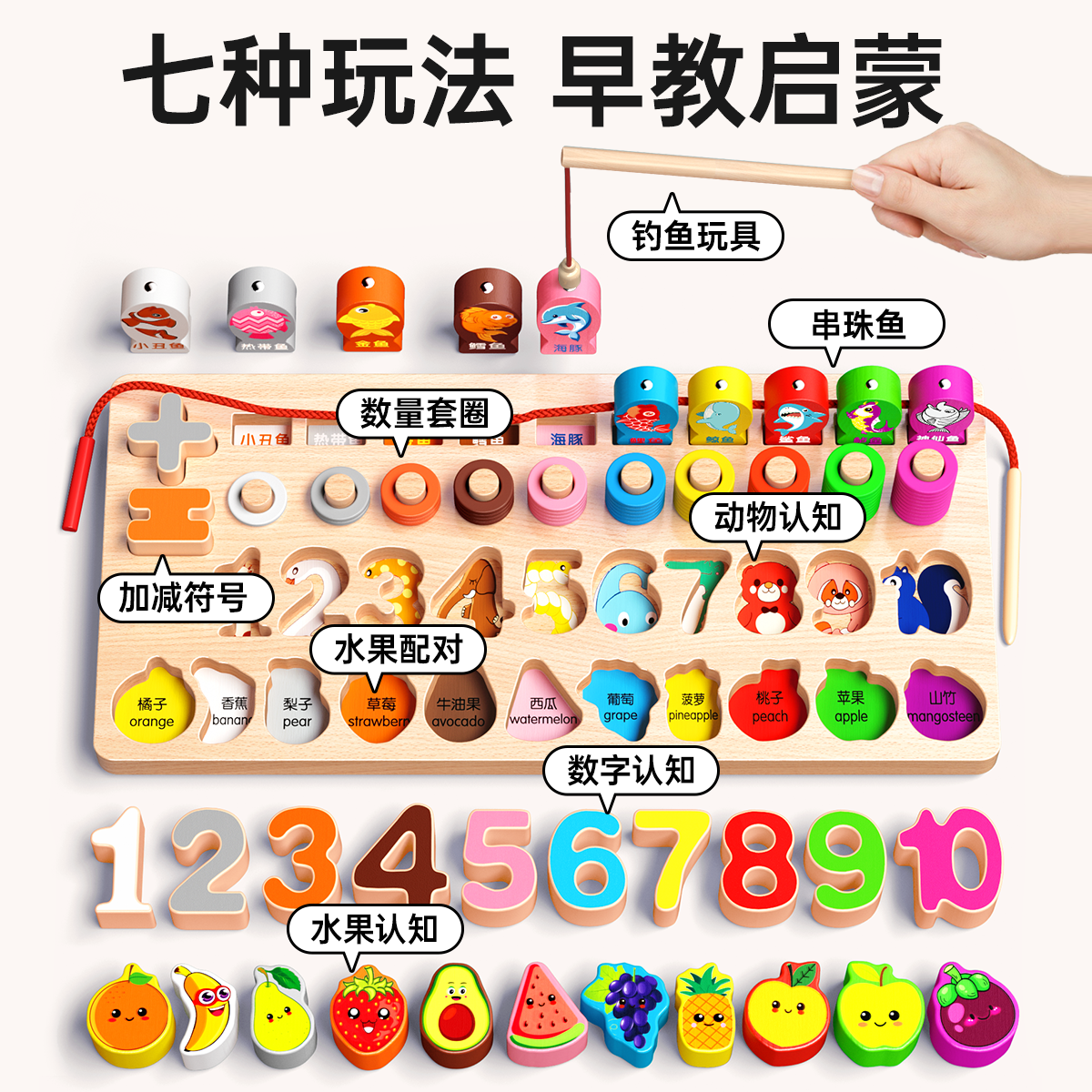 积木益智拼装玩具配对板婴儿宝宝蒙氏大脑开发儿童大颗粒数字拼图