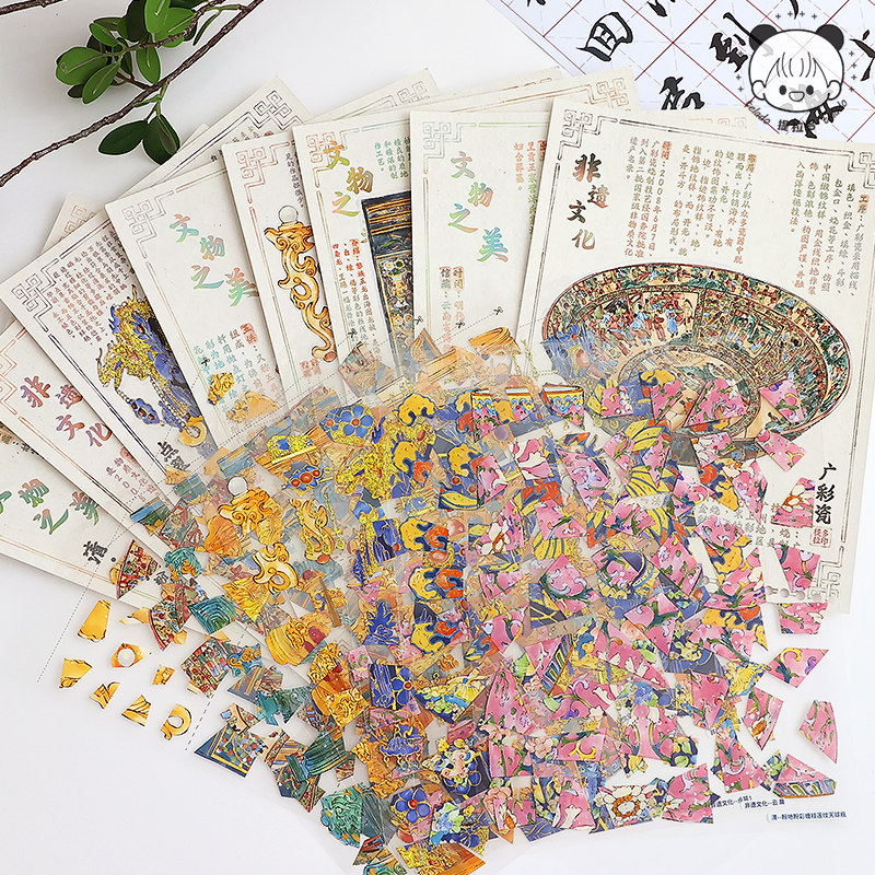 三年二班 文物修复合集本造景贴纸国家宝藏古董瓷器修复贴纸立体微缩场景小贴纸男孩女孩玩具贴画diy手账贴纸