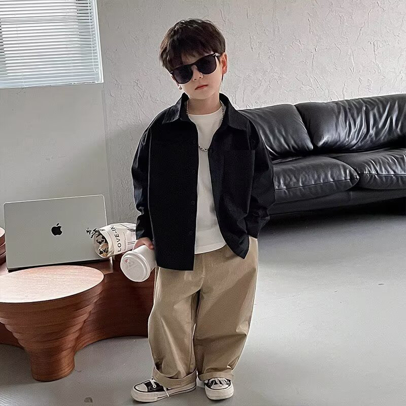 男童潮牌长袖衬衫春秋2026新款秋季上衣宽松痞帅儿童衬衣外套秋装
