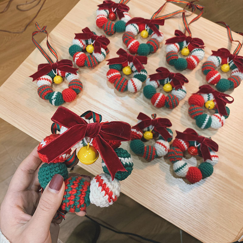 圣诞节花环装饰礼物小礼品毛线手工编织diy场景布置手工制作钩针