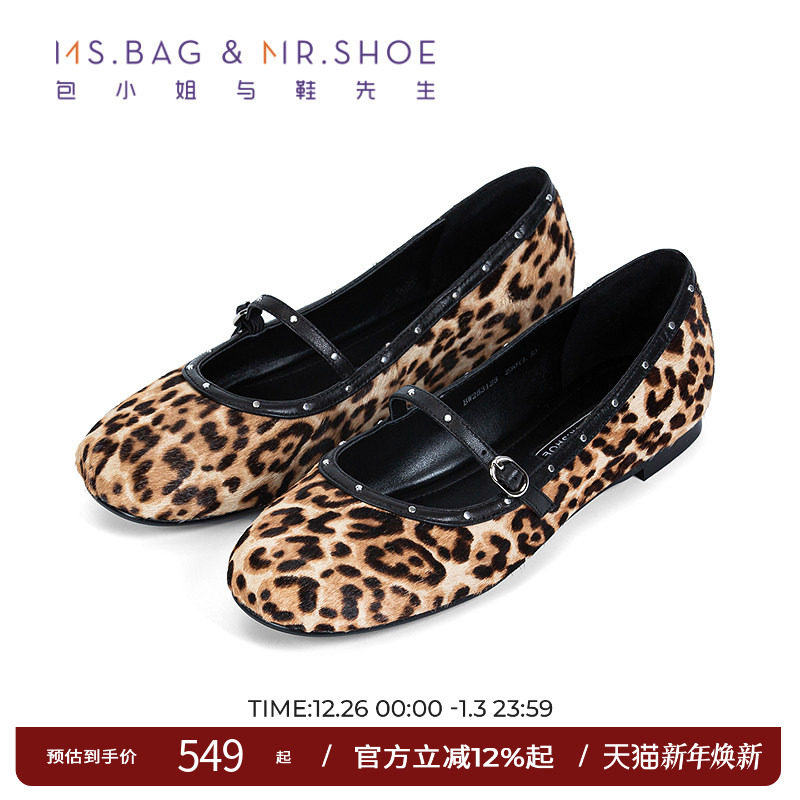 包小姐与鞋先生2025年秋季新款铆钉豹纹印花平底玛丽珍鞋女253123