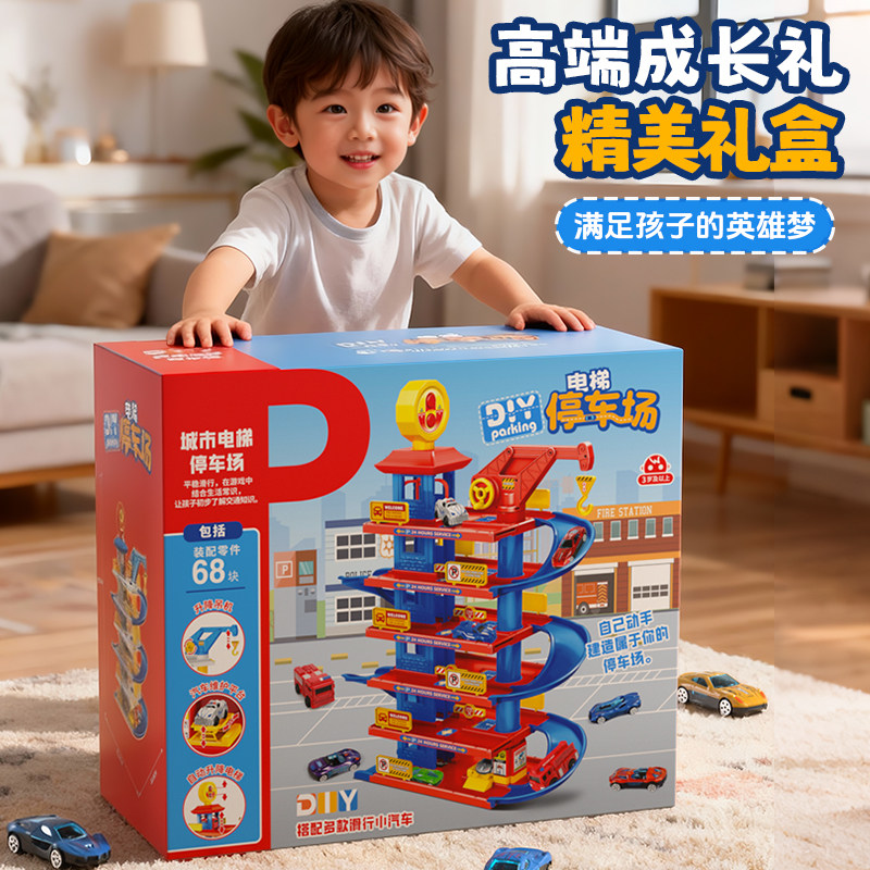 儿童轨道车小火车闯关大冒险汽车停车场消防车警车玩具男礼物大楼