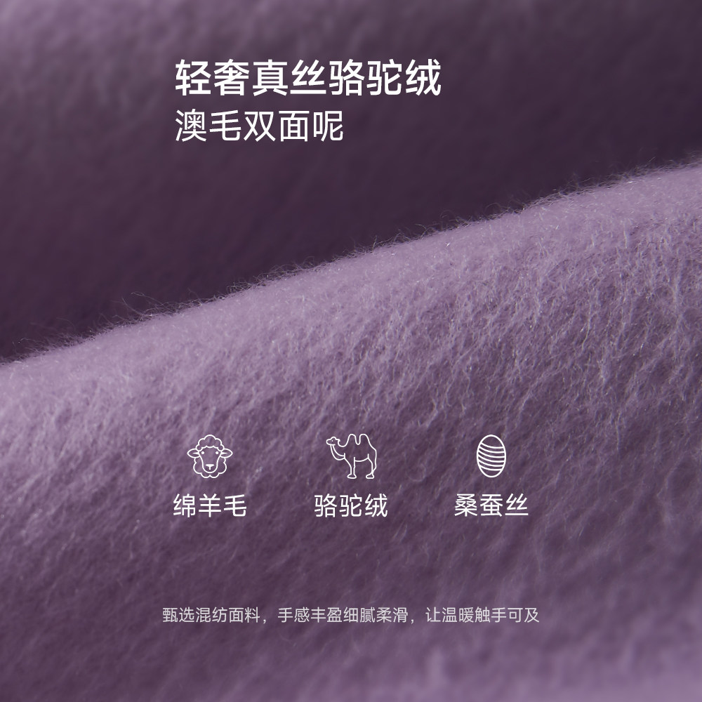 RUISHI芮时重磅驼绒桑蚕丝羊毛慵懒两穿领灰色毛呢大衣秋冬外套女