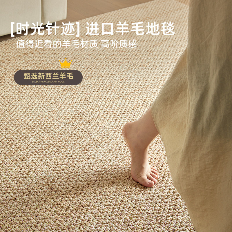 进口羊毛地毯大宅标配耐纯色侘寂中古风客厅卧室轻奢高级沙发地垫