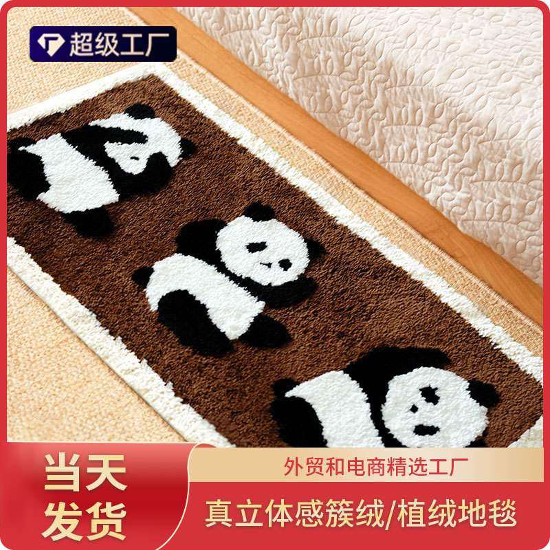 一件代发 可机洗超柔软床边谈ins风卧室熊猫毛绒地毯房间装饰可爱