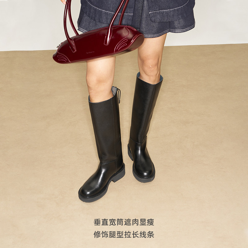 马君妍同款lost in echo显瘦巴恩风真皮厚底宽筒靴子长筒骑士靴
