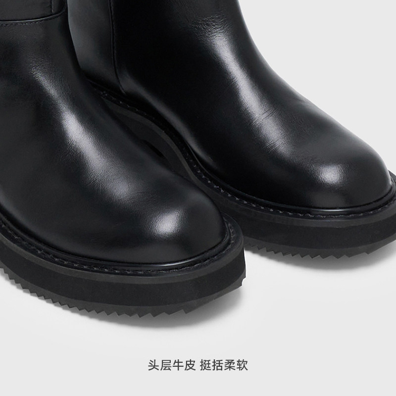 简洁利落圆头长筒靴 柔软质感牛皮