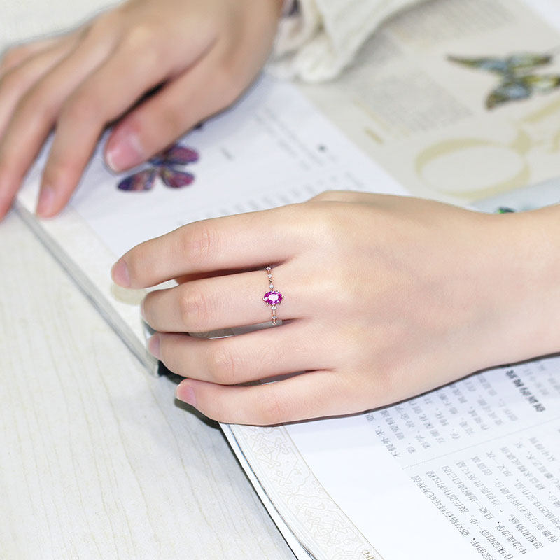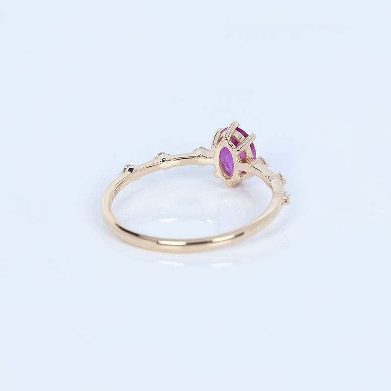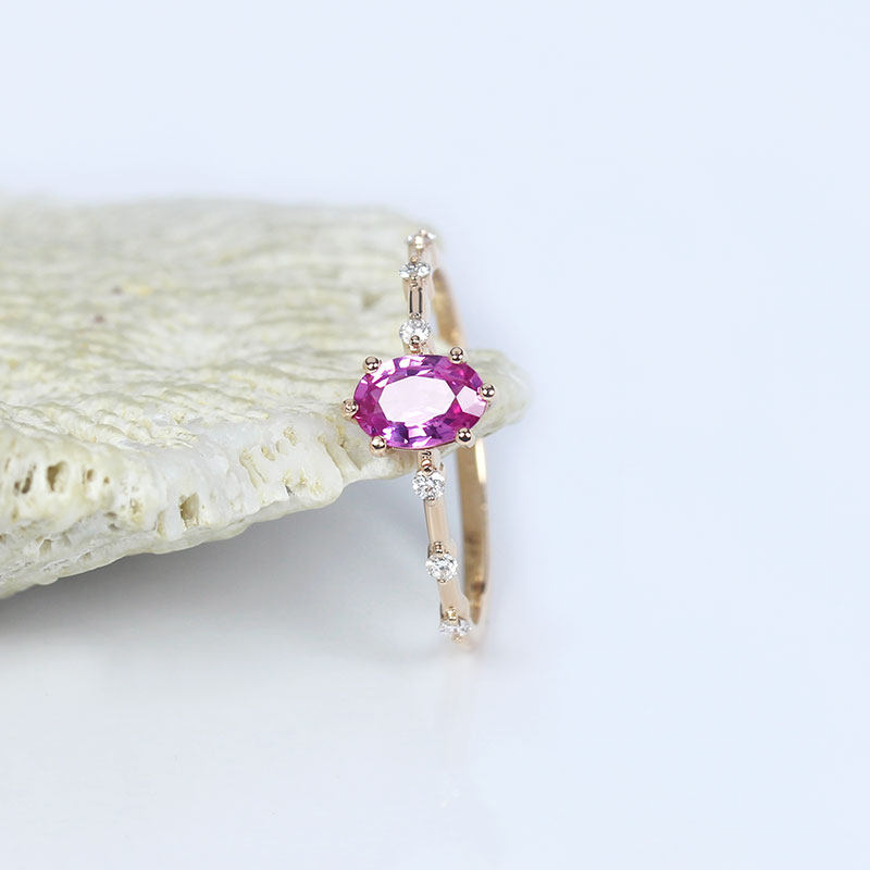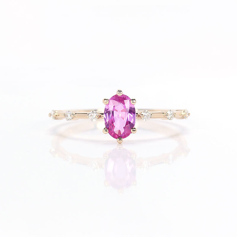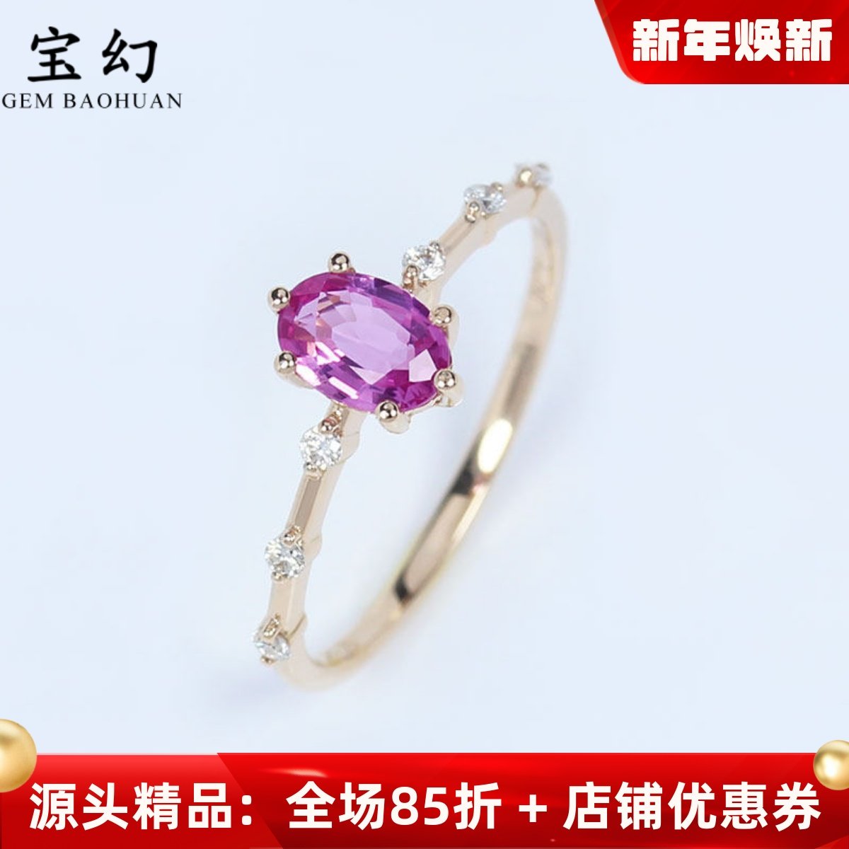 18K玫瑰金斯里兰卡天然粉色蓝宝石六爪戒指女款 彩金复古钻石手饰