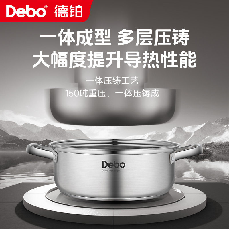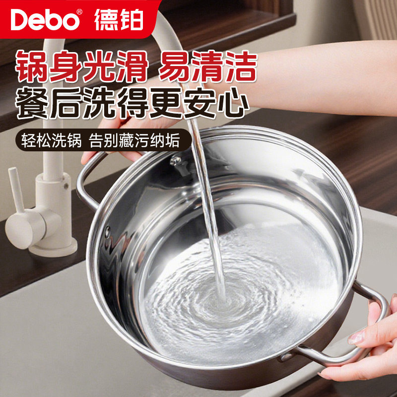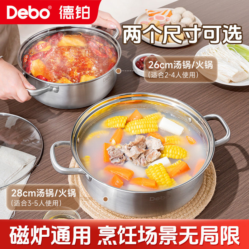 Debo汤锅316不锈钢锅身加厚清汤锅家用火锅盆燃气电磁炉通用锅具