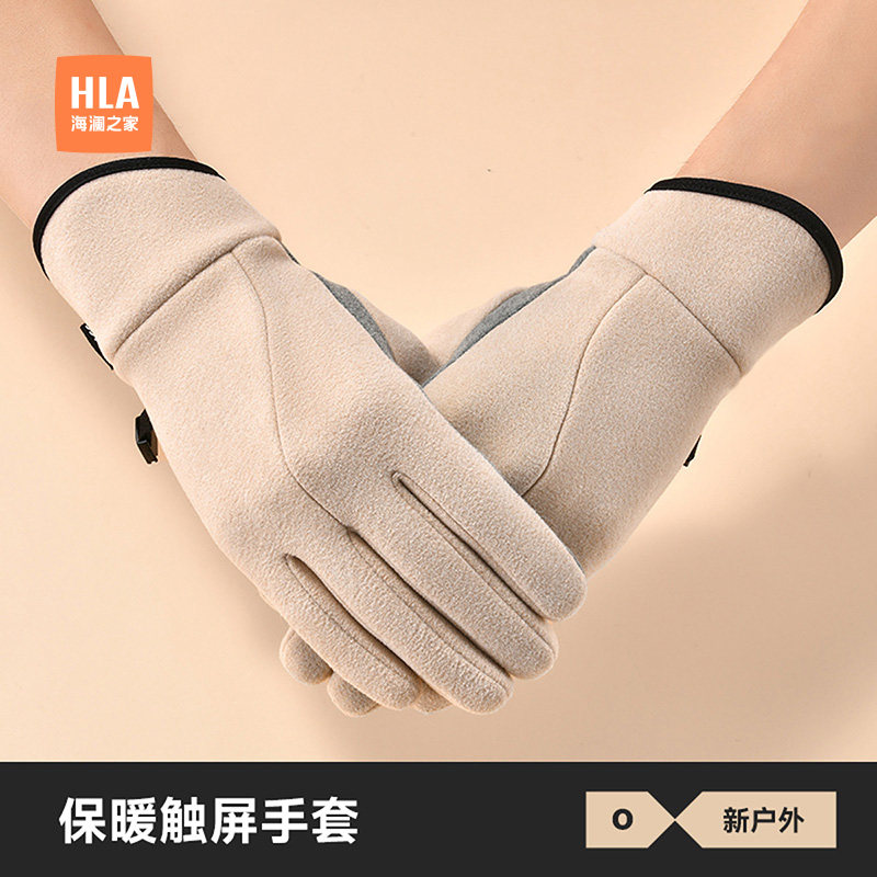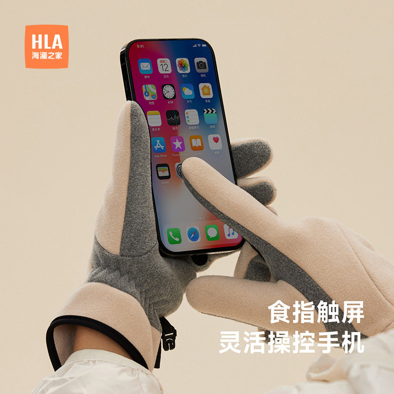 海澜之家布艺手套女士潮流新款保暖防风触屏加绒冬季户外骑行开车