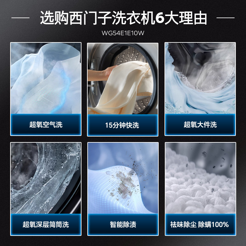 西门子10公斤超氧变频滚筒全自动家用洗衣机深层除螨WG54E1E10W
