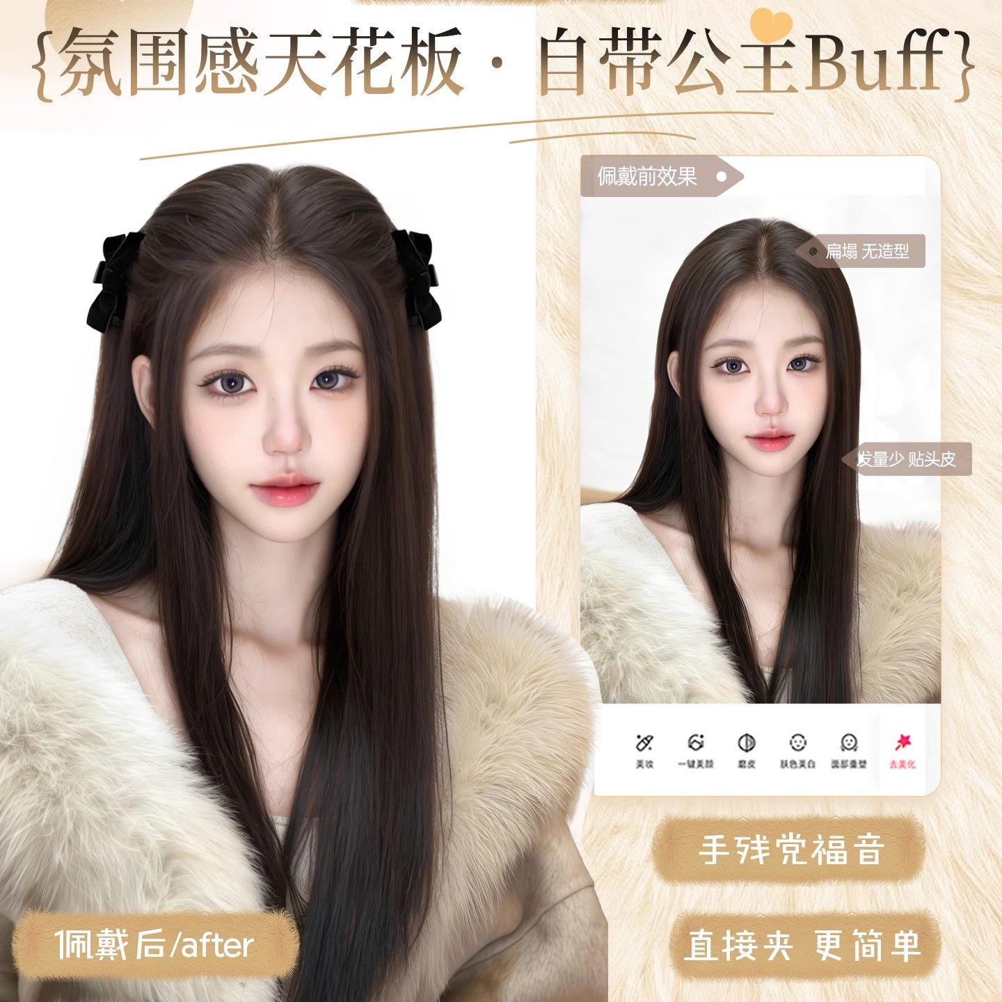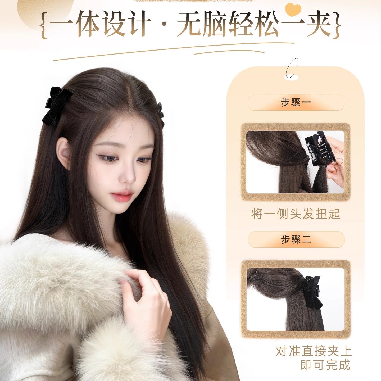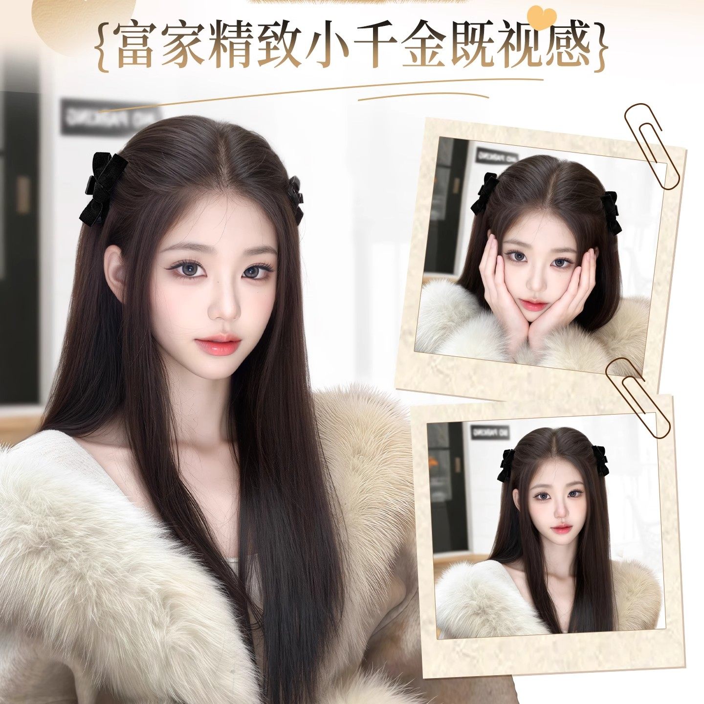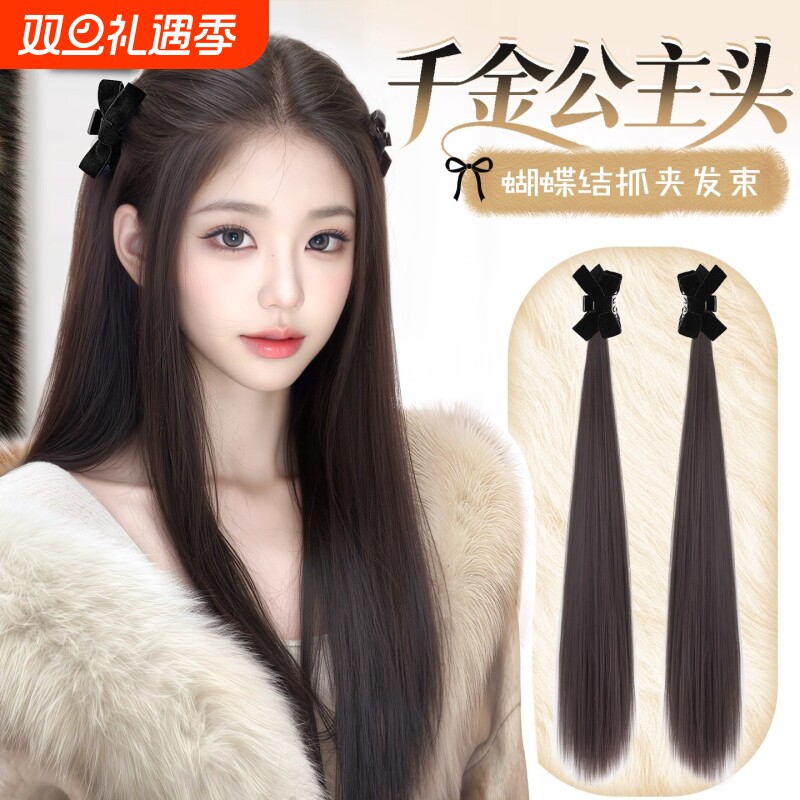假发辫子女蝴蝶结半扎双马尾发束增发量长辫子公主头抓夹发饰挑染
