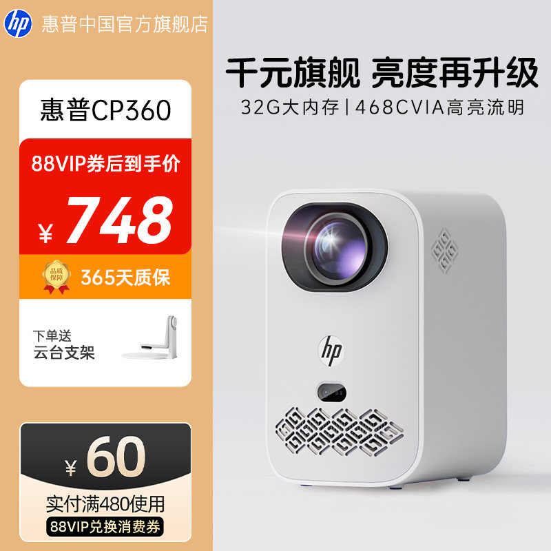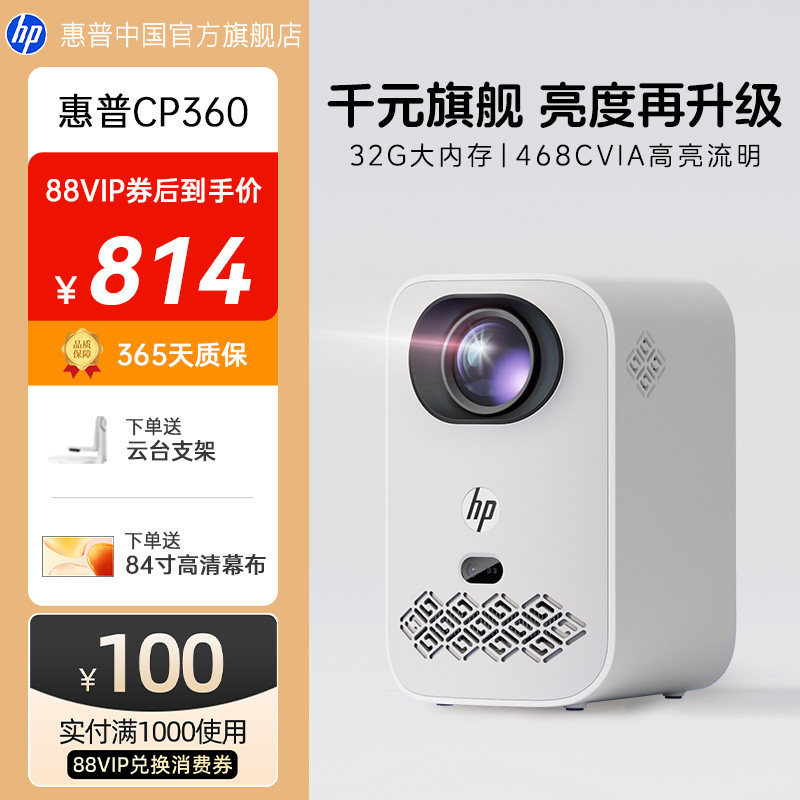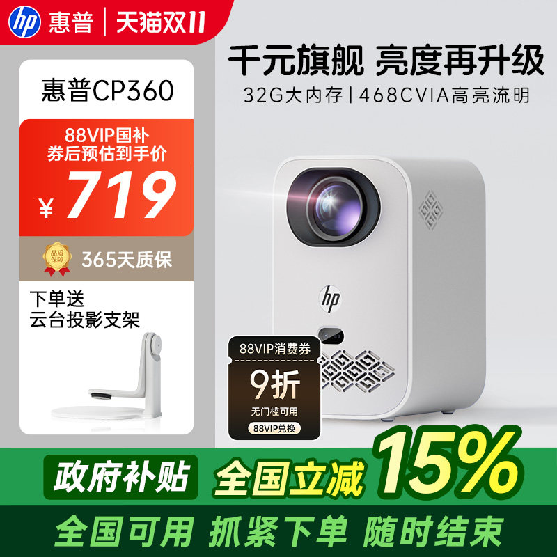 【全国政府补贴立减15%】惠普投影仪1080P家用超高清宿舍高亮度小型卧室可投手机影院4k解码投影机会议投屏