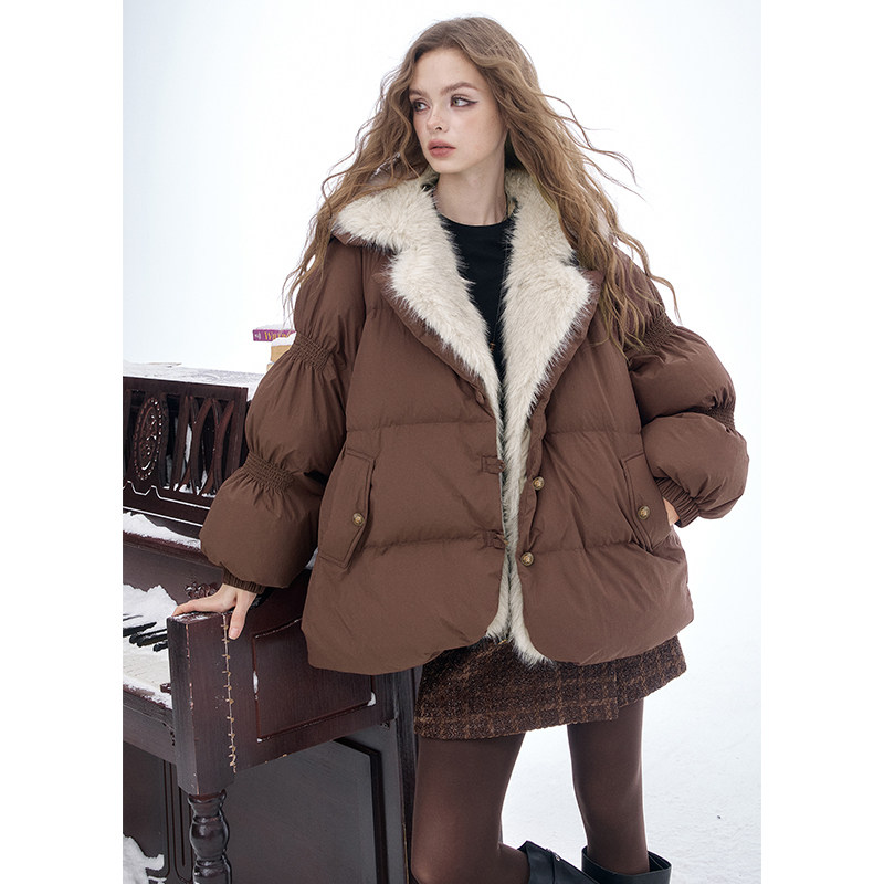 【蜜蜂欢乐社】妖精的口袋复古大毛领羽绒服女2025年冬新款面包服