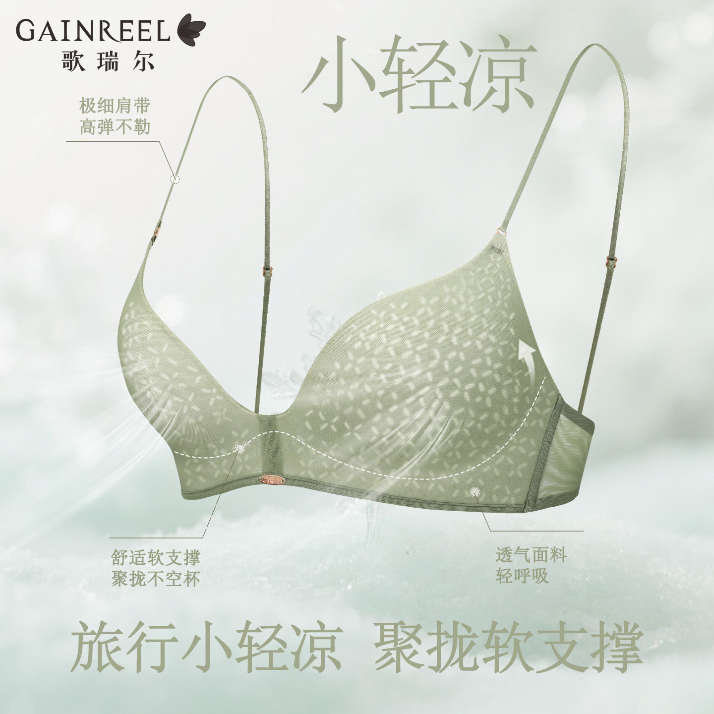 凉感透气 细肩带美背 舒适无钢圈 简约无痕