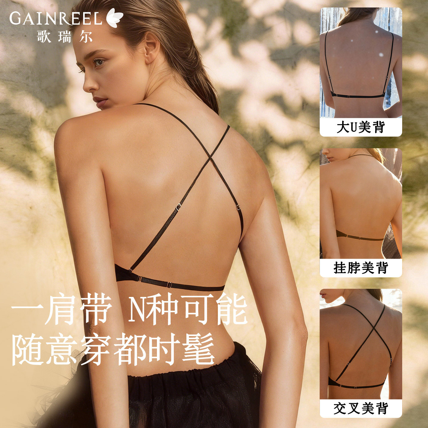 歌瑞尔细肩带挂脖内衣文胸凉感透气美背性感2026新款聚拢百搭约会
