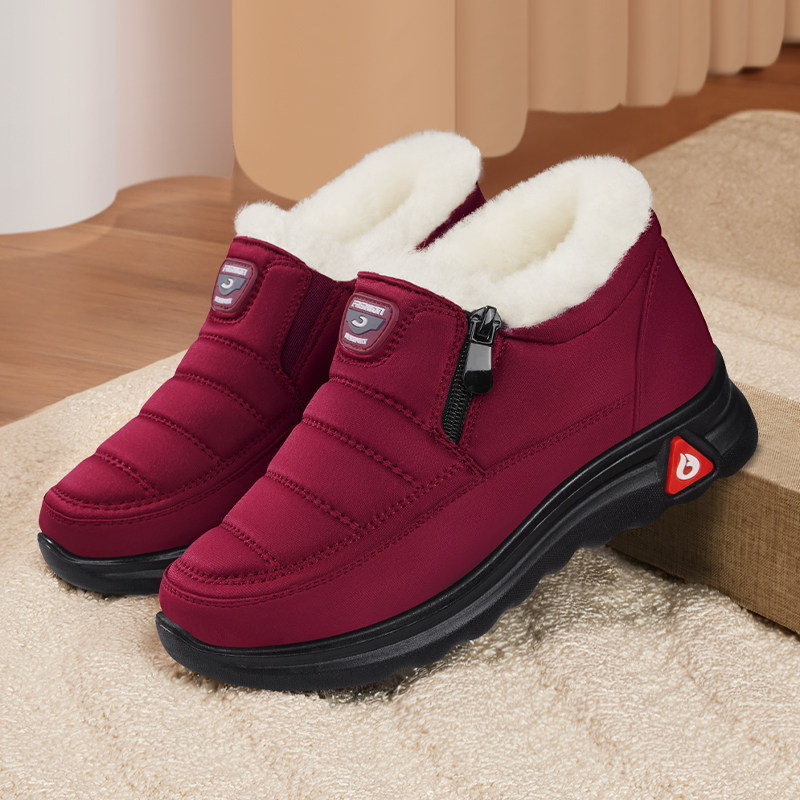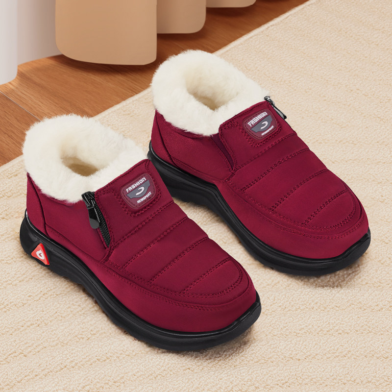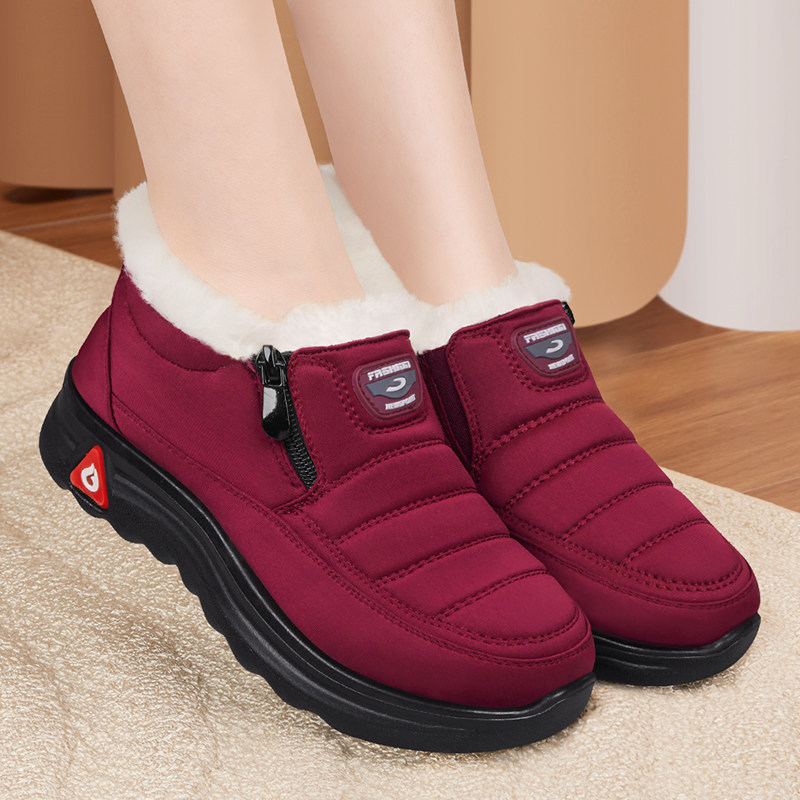 棉鞋女冬季2025新款加绒加厚羊毛保暖中老年防滑防水妈妈鞋红色