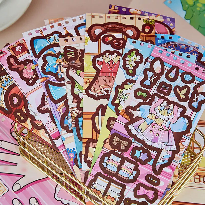 萌崽新款学霸学渣果冻贴纸安静书儿童免裁剪手工粘贴DIY女孩趣味玩具