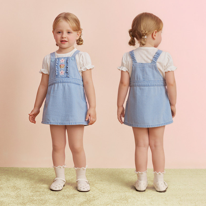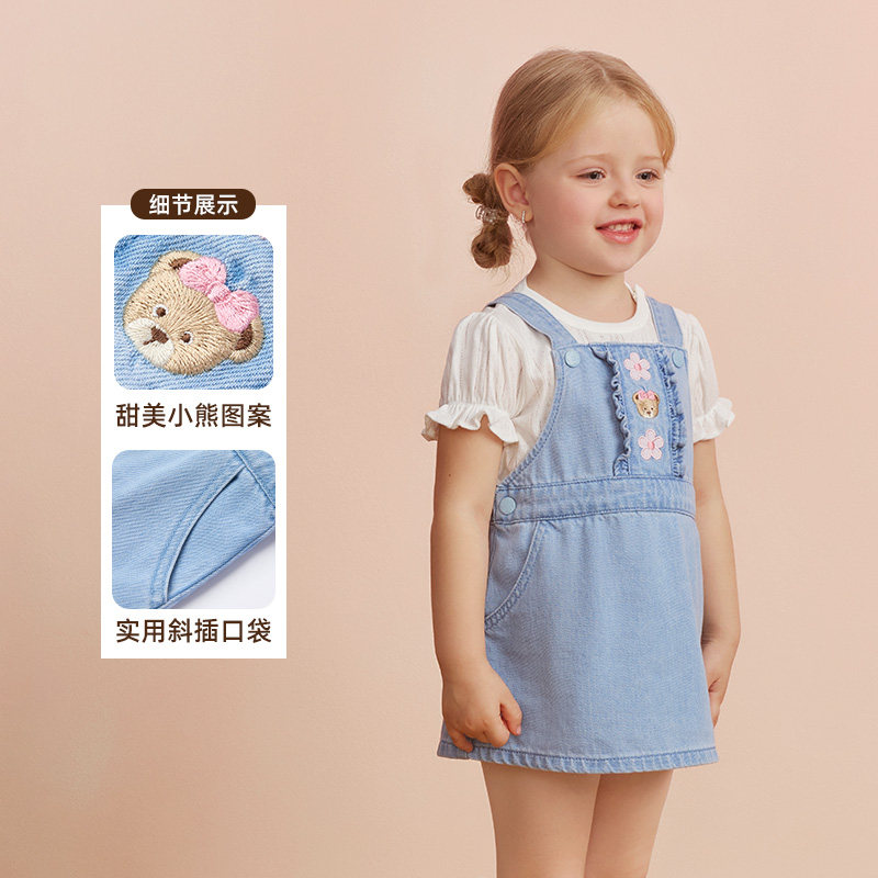 【全棉】PawinPaw卡通小熊童装26年春夏季新款女宝宝牛仔背带裙