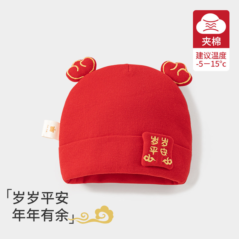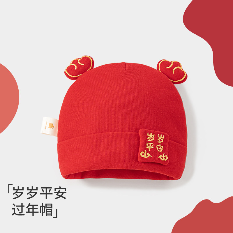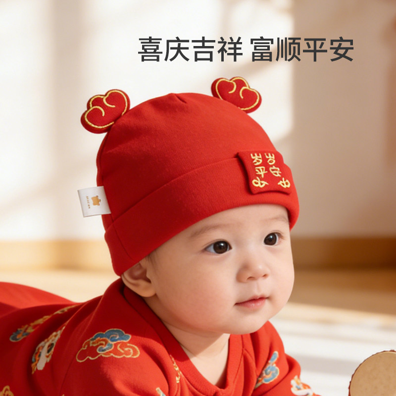 婴儿帽子秋冬季新生儿小月龄胎帽宝宝红色喜庆过年帽婴幼儿周岁帽