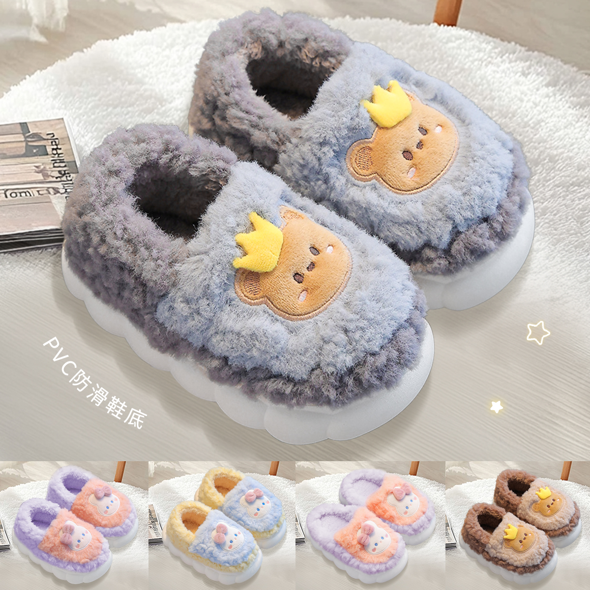 儿童防滑包跟棉鞋女童秋冬款居家室内男童棉亲子毛毛拖鞋卡通兔子