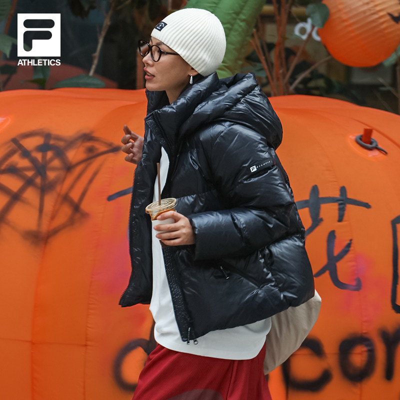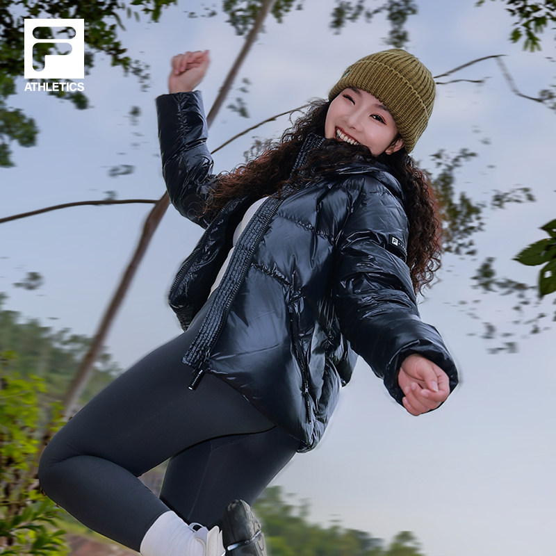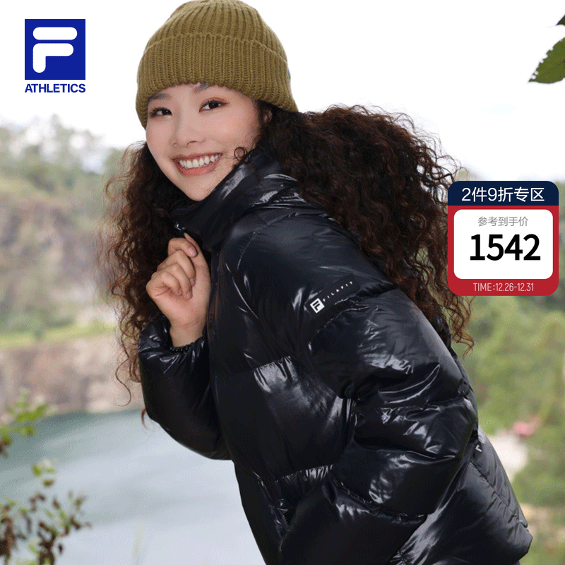 FILA飞羽斐乐女士鹅绒羽绒服2025冬新款运动轻量宽松保暖短款外套