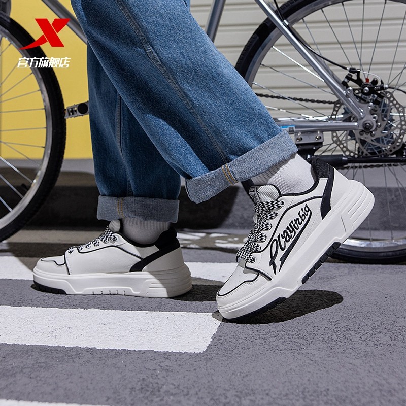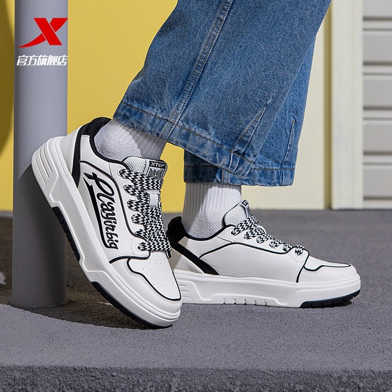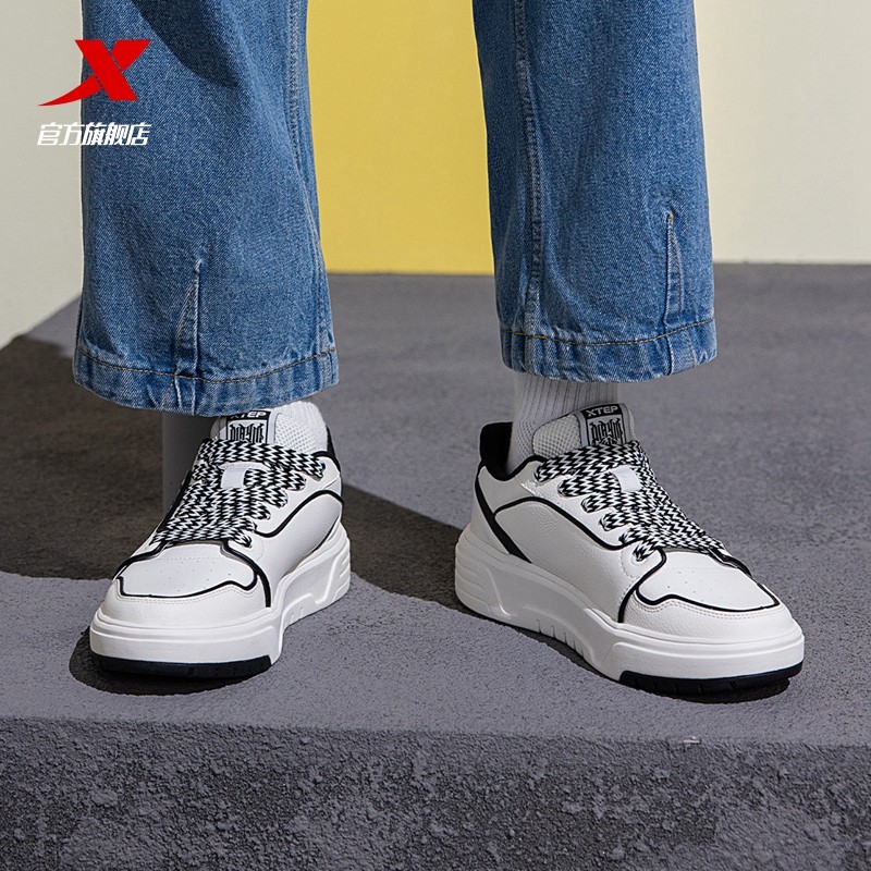 特步星火休闲鞋男鞋冬季革面轻便百搭厚底增高女鞋革网正品运动鞋
