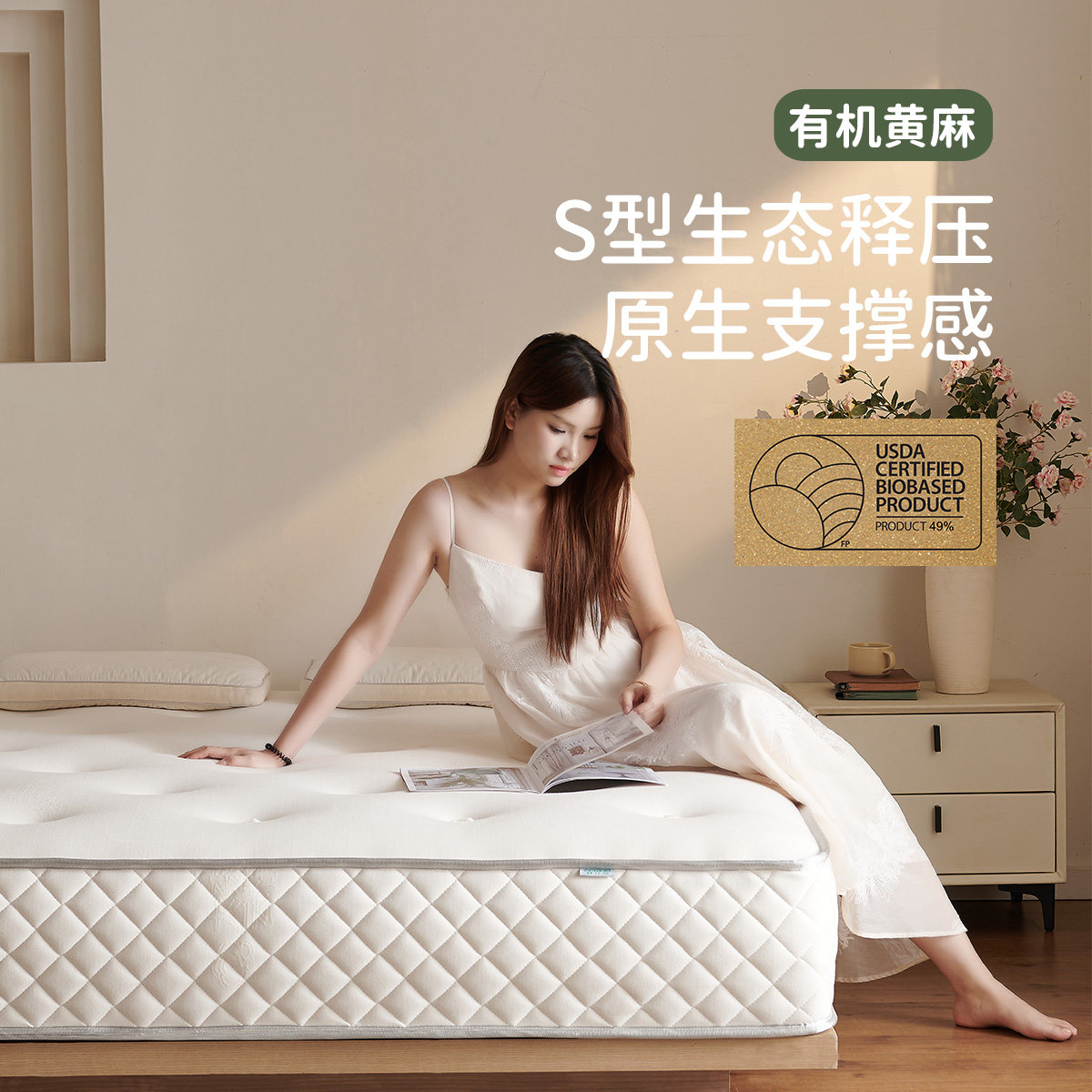 麻大师豆蔻S型精细黄麻0胶水床垫硬垫子10cm厚棕垫定制榻榻米床垫