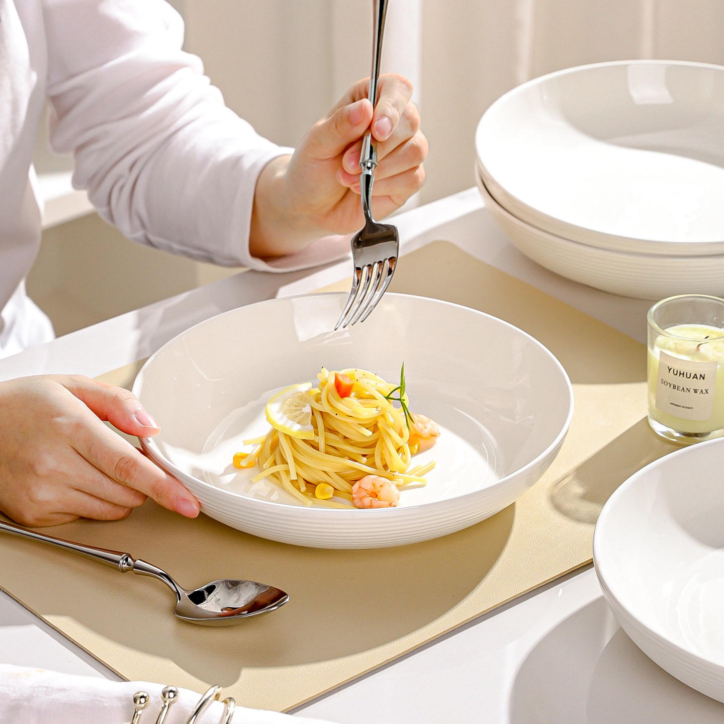 酒店摆台餐具四件套套装陶瓷碗碟盘勺饭店餐厅会所火锅店骨碟商用