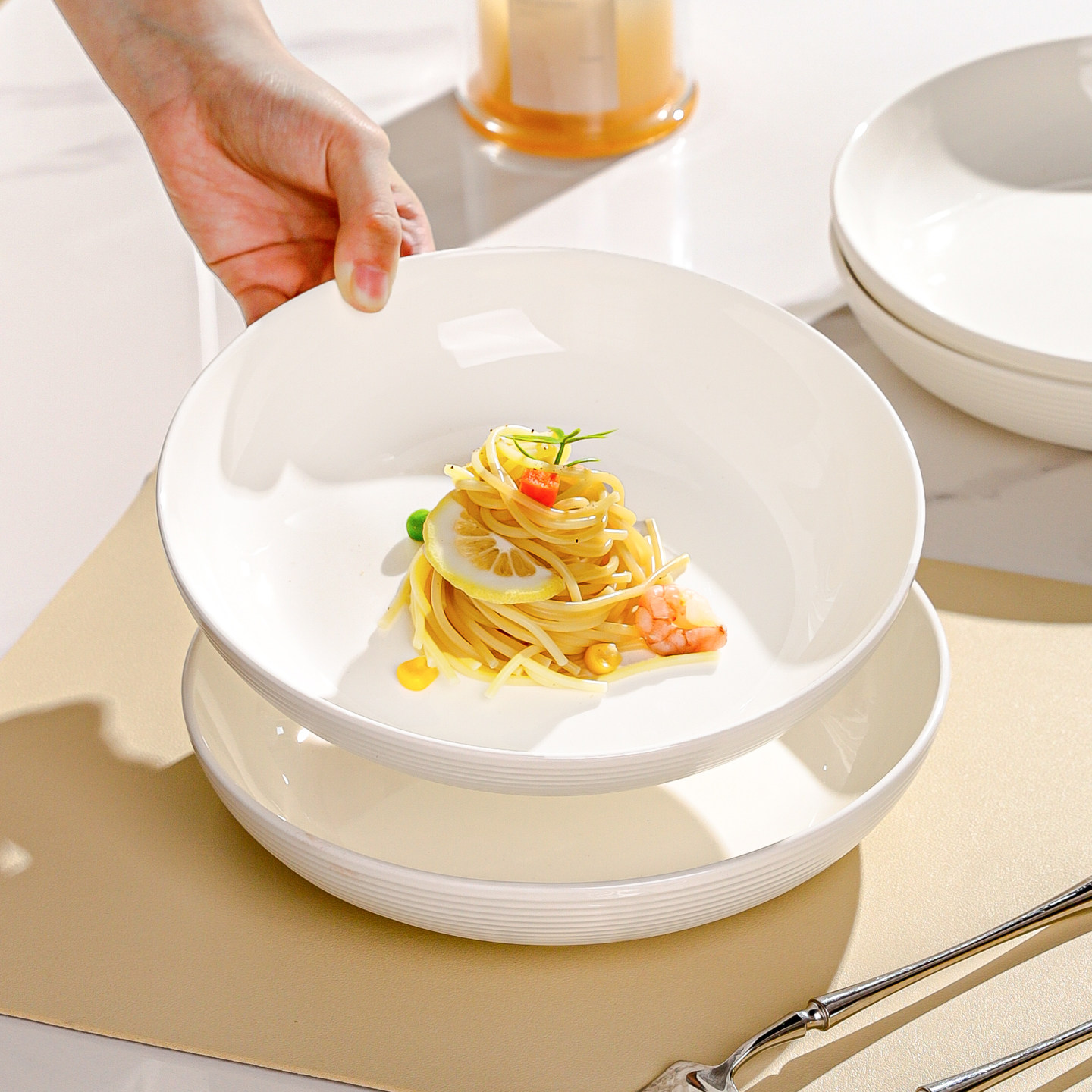 创意ins风高级感荷叶边陶瓷盘意面盘深盘西餐盘水果沙拉碗酸奶碗
