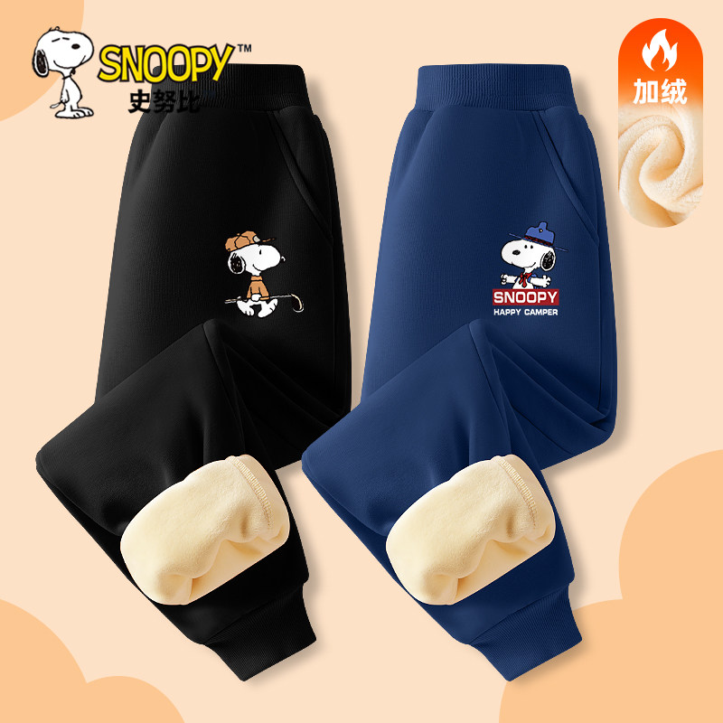 史努比男童加绒裤子2025新款卫裤春秋款男孩秋冬长裤儿童装运动裤