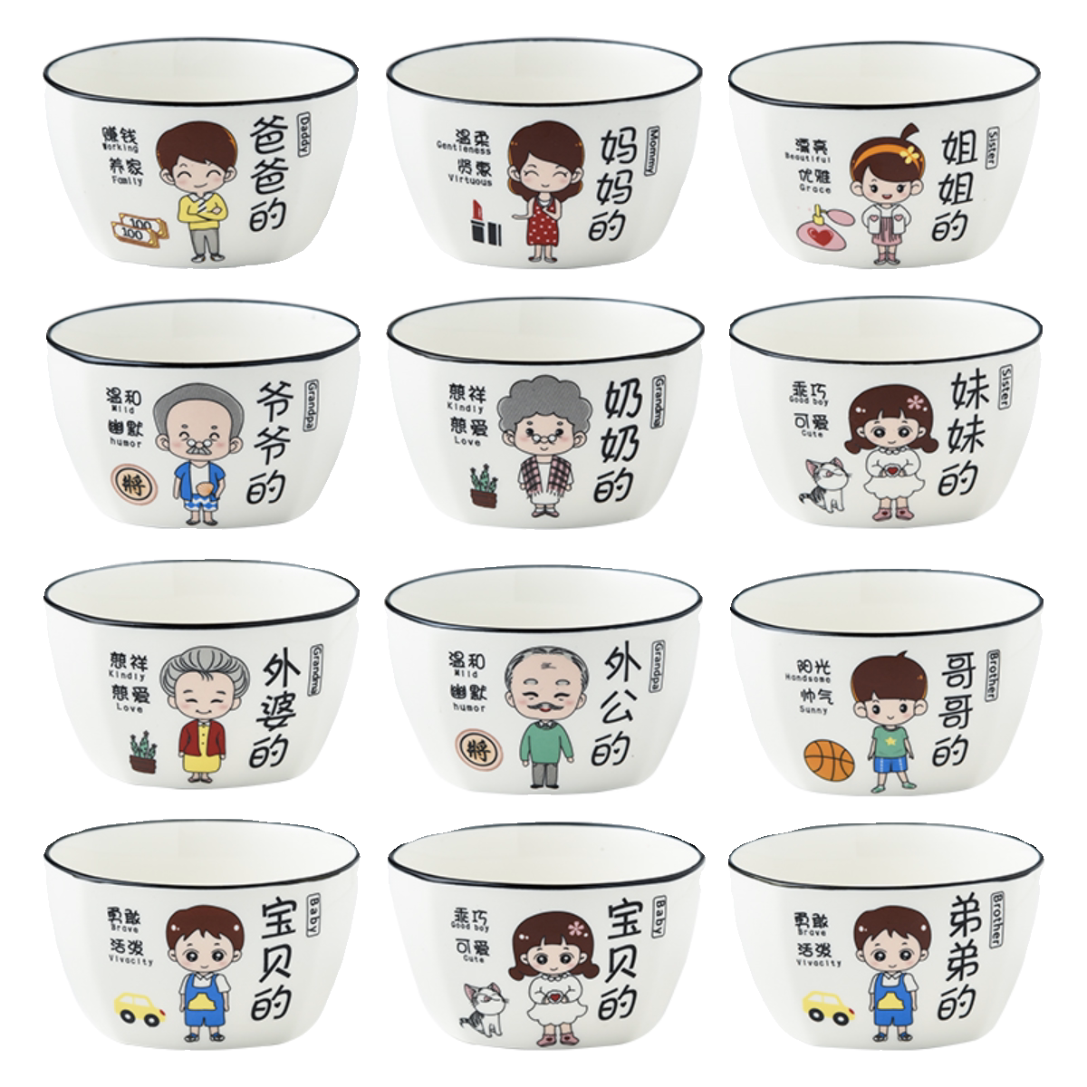 亲子碗家用创意个性一家四口家庭专人专用区分碗碟套装陶瓷吃饭碗