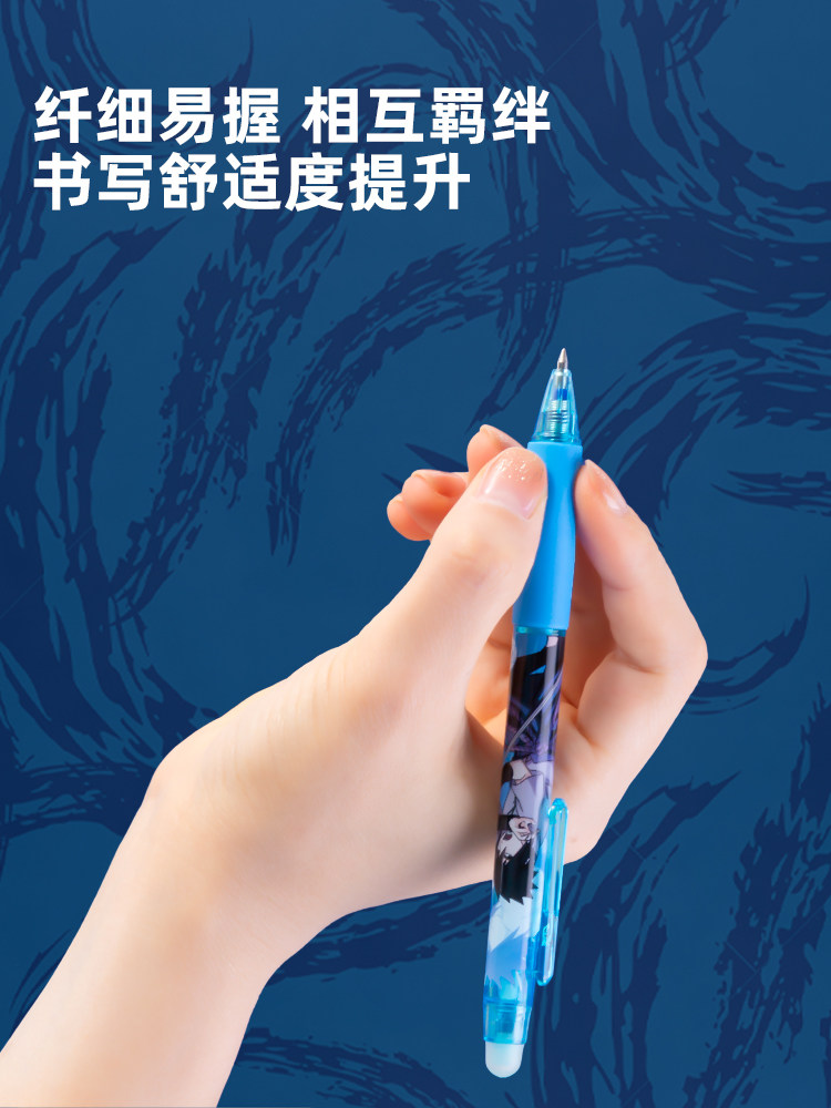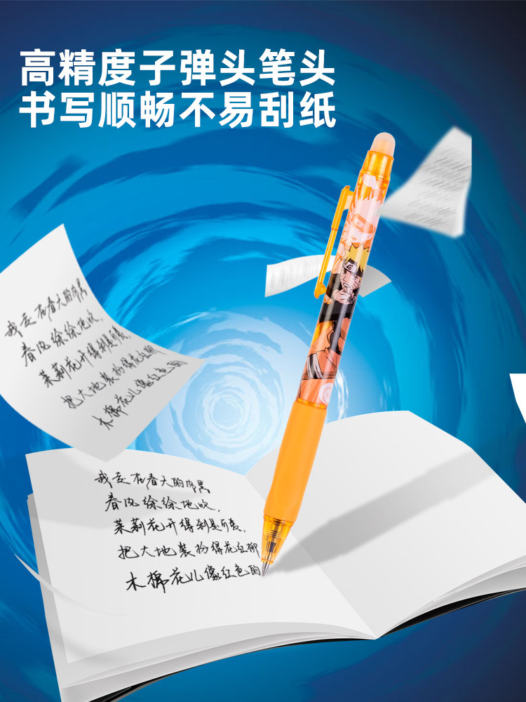 【火影忍者】得力按动可擦中性笔可擦笔0.5mm学生用矫姿笔按动黑色晶蓝易擦热敏3-5年级用卡通男生正姿A665