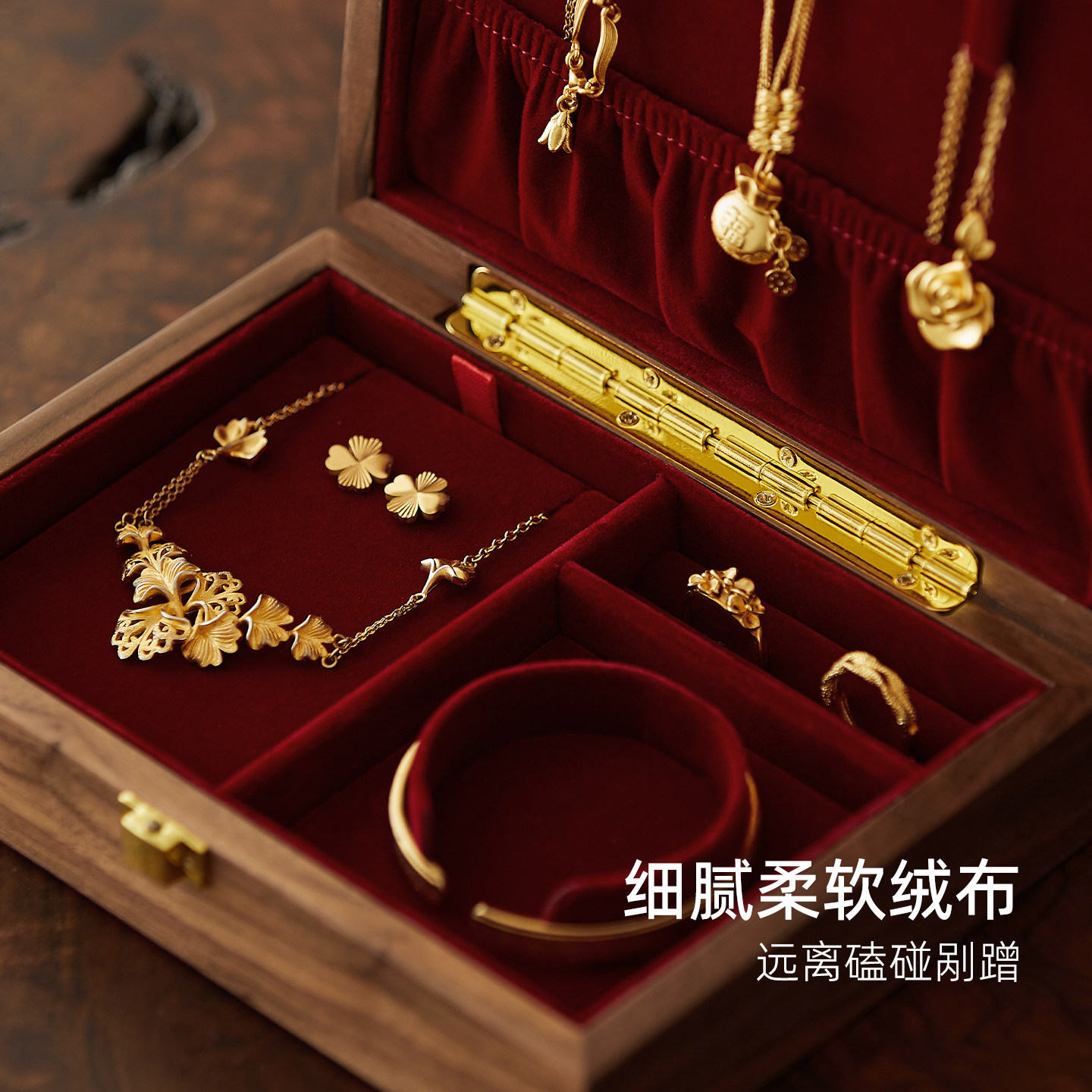三金五金黄金首饰盒七夕送女友实木收纳盒高档精致结婚订婚礼物