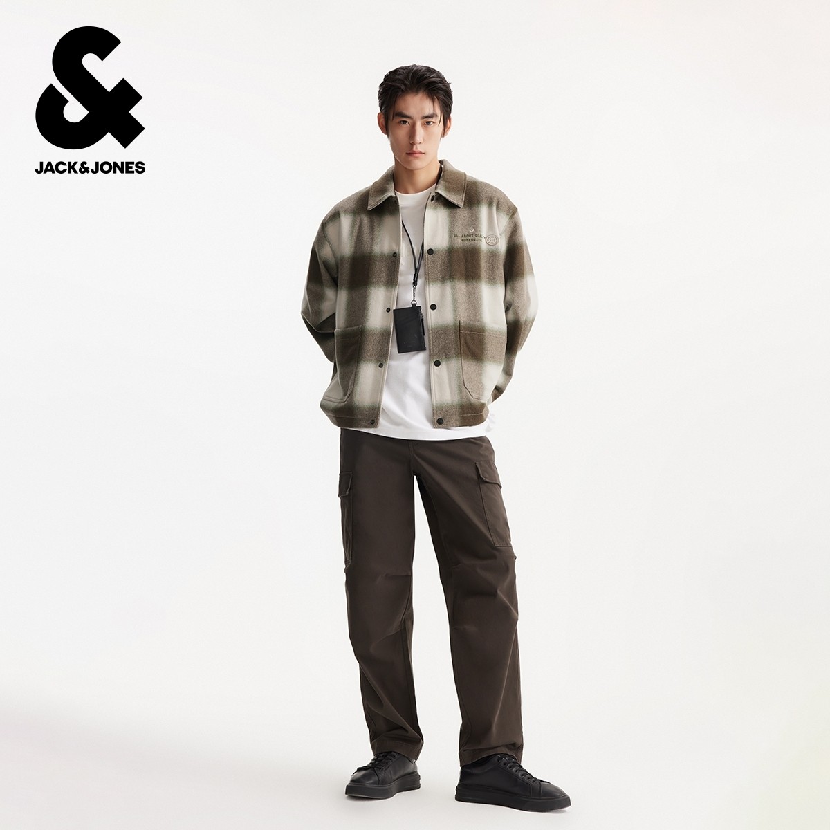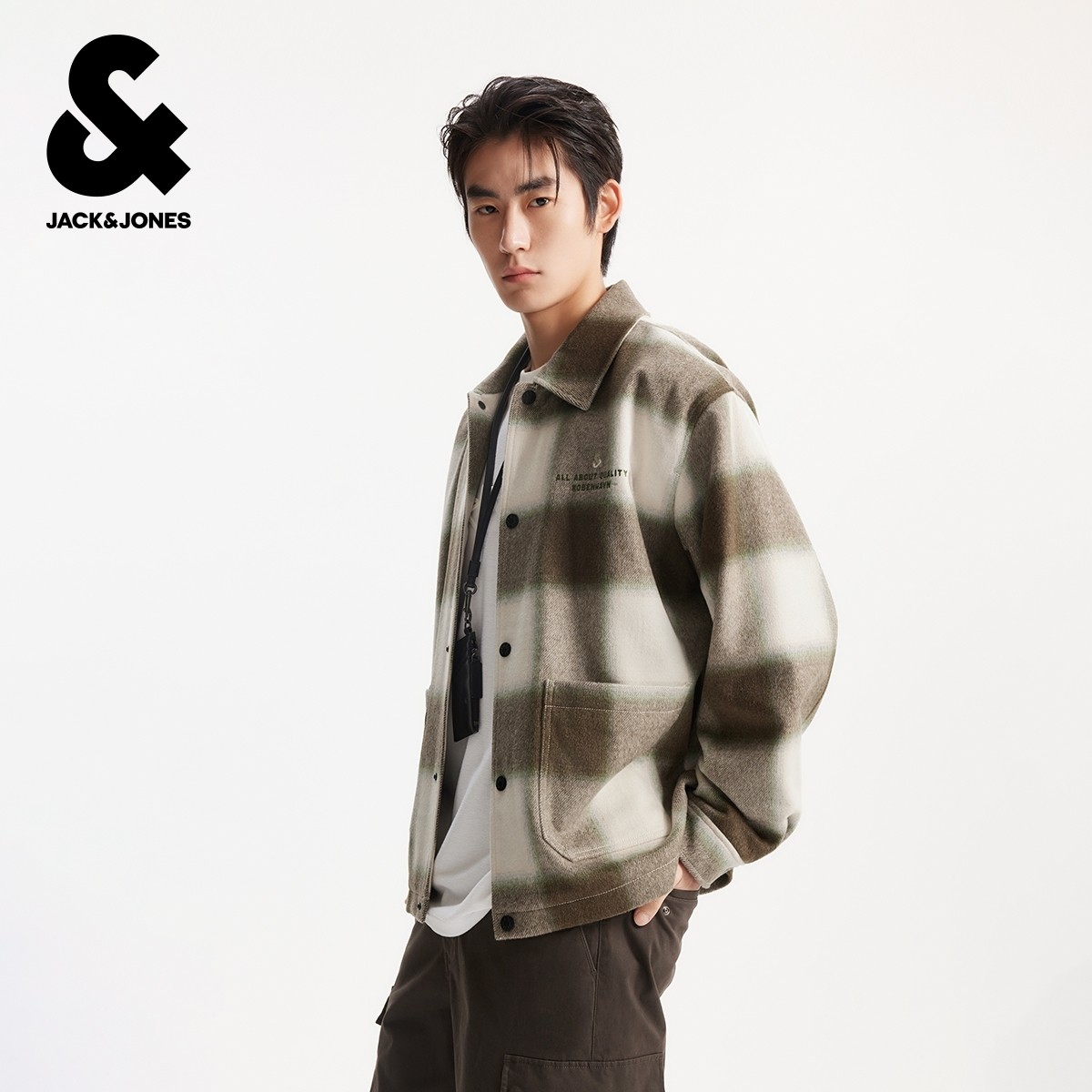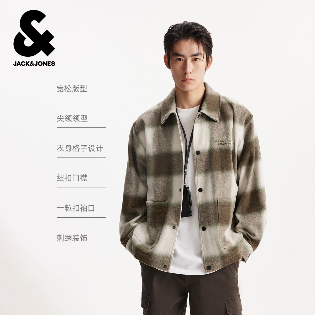 杰克琼斯秋冬季男装毛呢大衣外套时尚百搭休闲舒适宽松格子花纹装