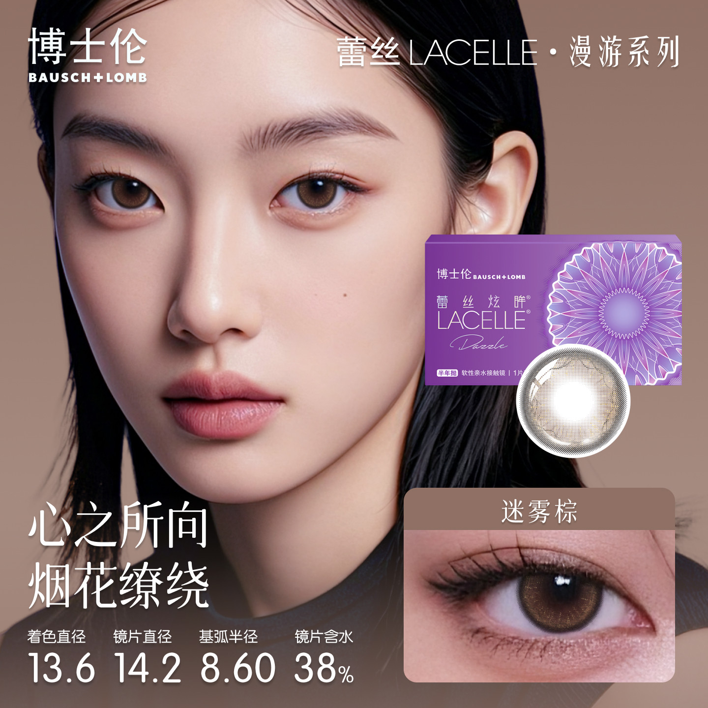 博士伦美瞳半年抛彩色隐形眼镜近视蕾丝闪眸高定系列水凝胶1片