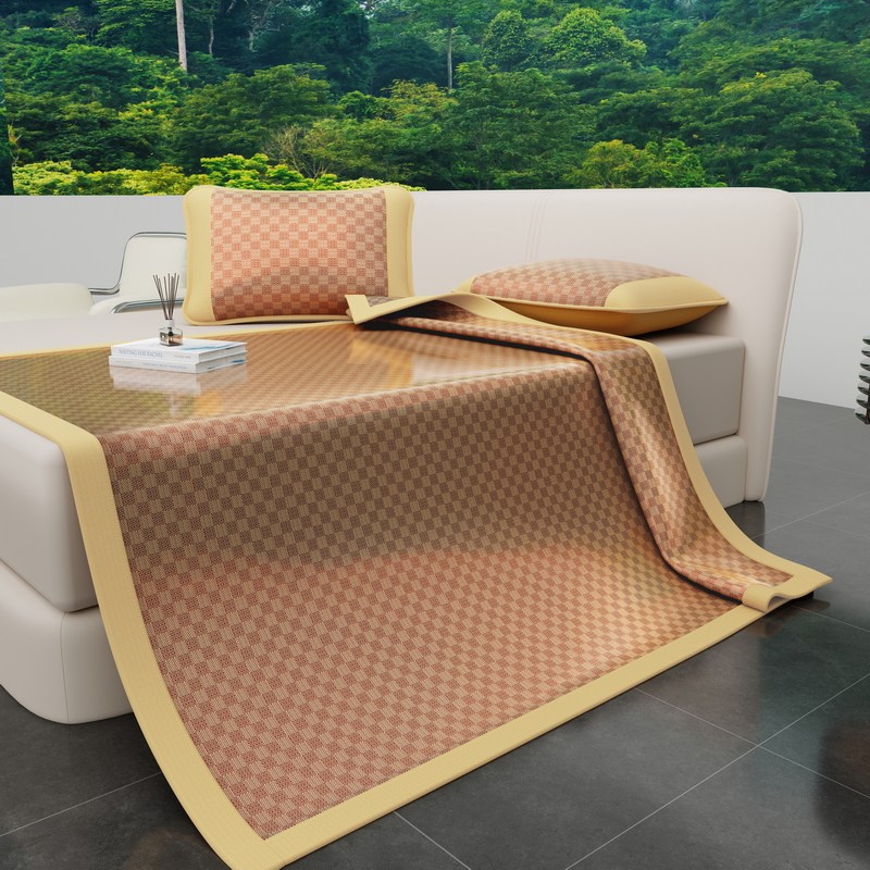 藤席凉席夏季冰丝席可折叠水洗家用裸睡空调软席子透气三件套艾草