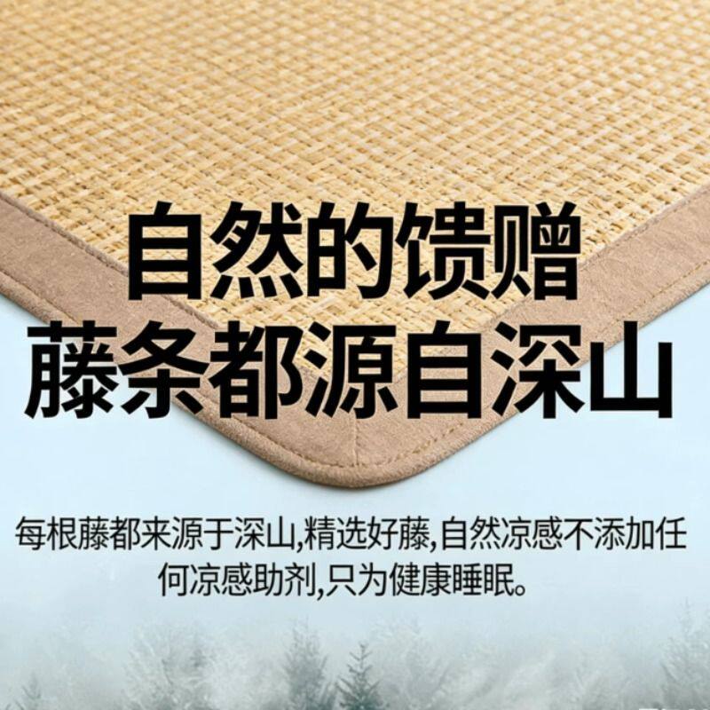 藤席冰丝凉席夏季裸睡双面正反两用可折叠家用双人1.5米1.8草席子
