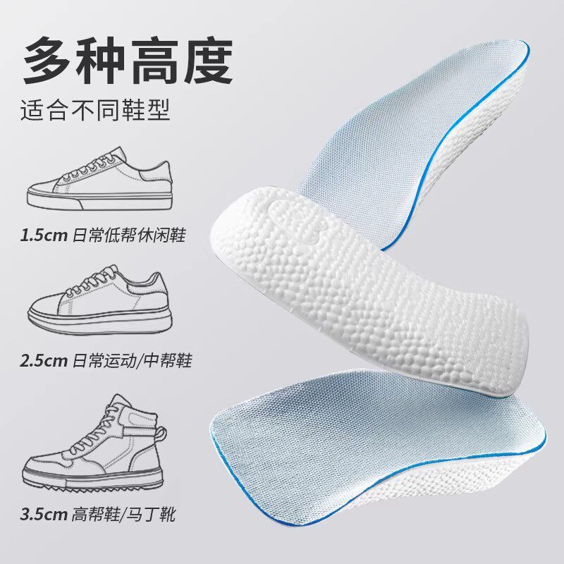 增高鞋垫男士女隐形内增高垫半垫增高垫足弓支撑不累脚舒适吸汗
