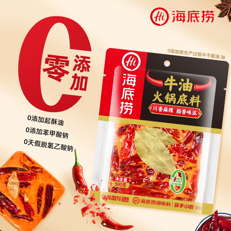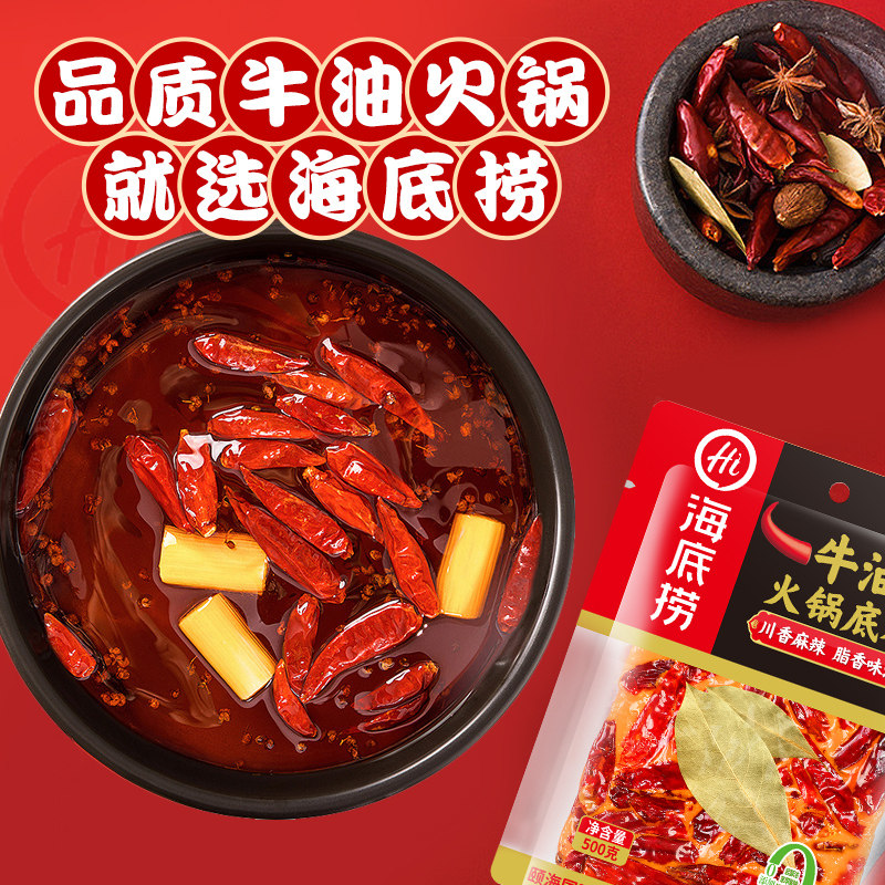 HI海底捞牛油火锅底料500g麻辣四川重庆麻辣烫小块家用浓香调味料