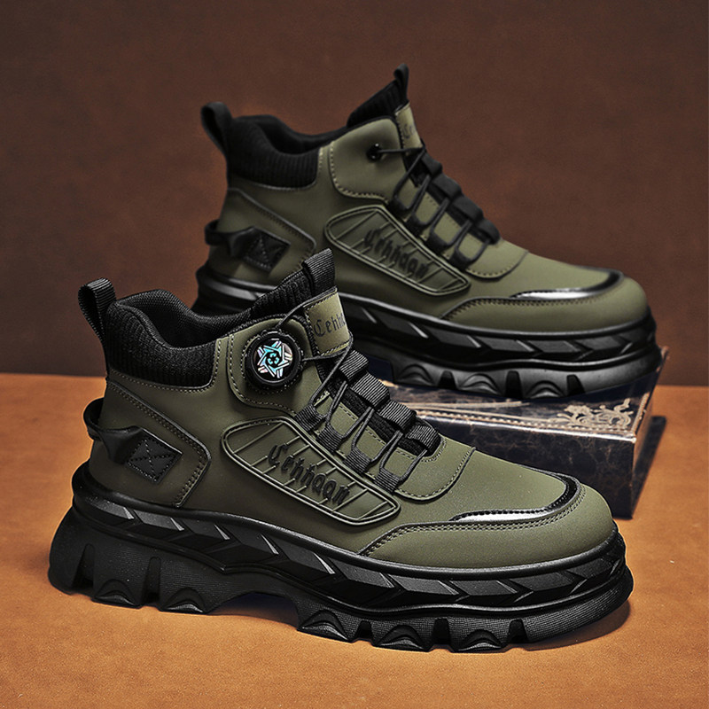 马丁靴男鞋高帮冬季美式户外登山防水防滑增高工装靴耐磨黑色鞋底
